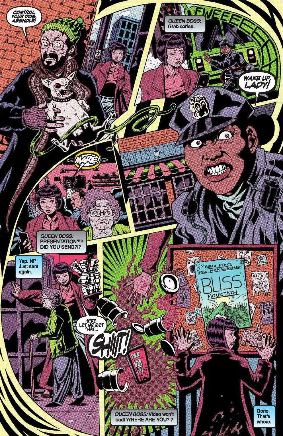 In the next issue of this groundbreaking horror anthology featuring the top creators in the industry at their absolute darkest, Garth Ennis and Becky Cloonan unveil part 4 of The War, where two couples fight for survival in New York, but it's not just the world around them crumbling, as the long night stretches on. In addition, it's a feast for the senses with All Eyes on Me by Chloe Brailsford and Dying for Quiet by Shawn Patrick Boyd and Elijah Henry, and more madcap madness in I Can't Take You Anywhere by Robert Hack!