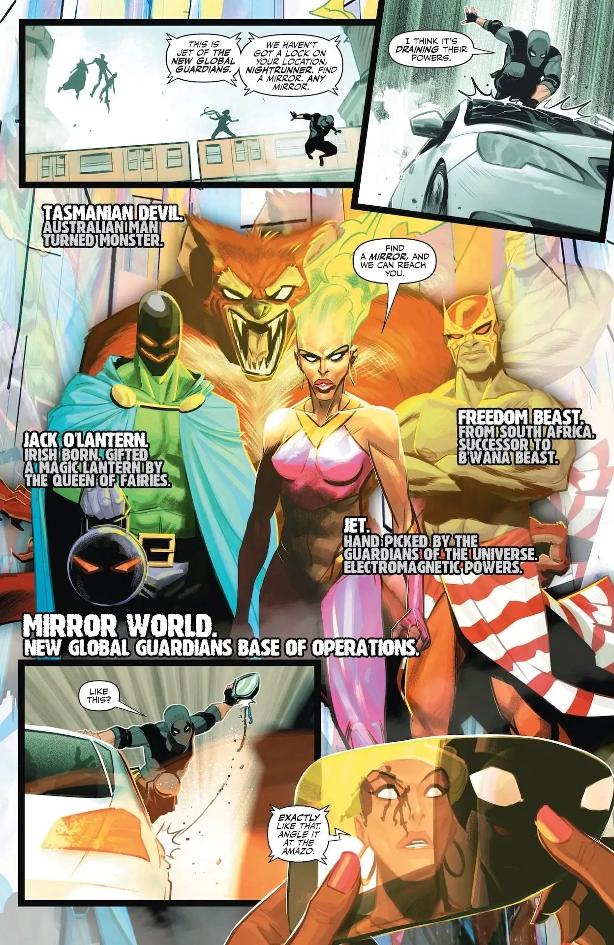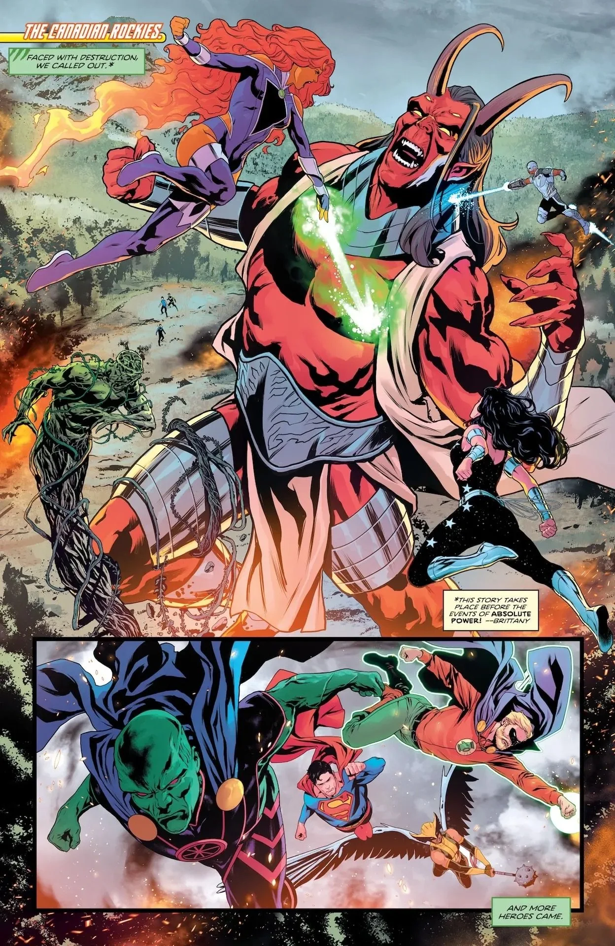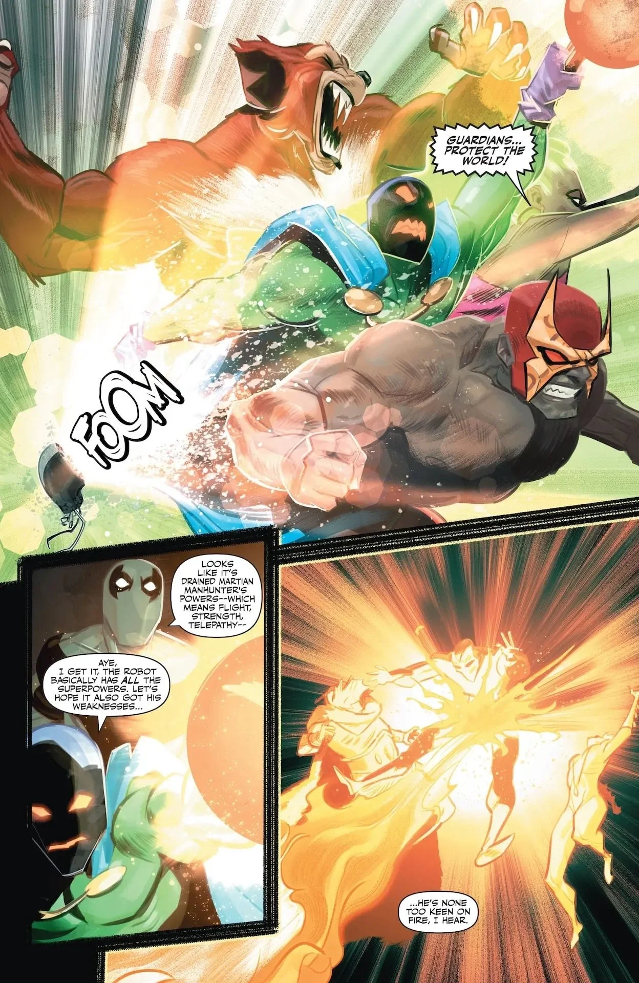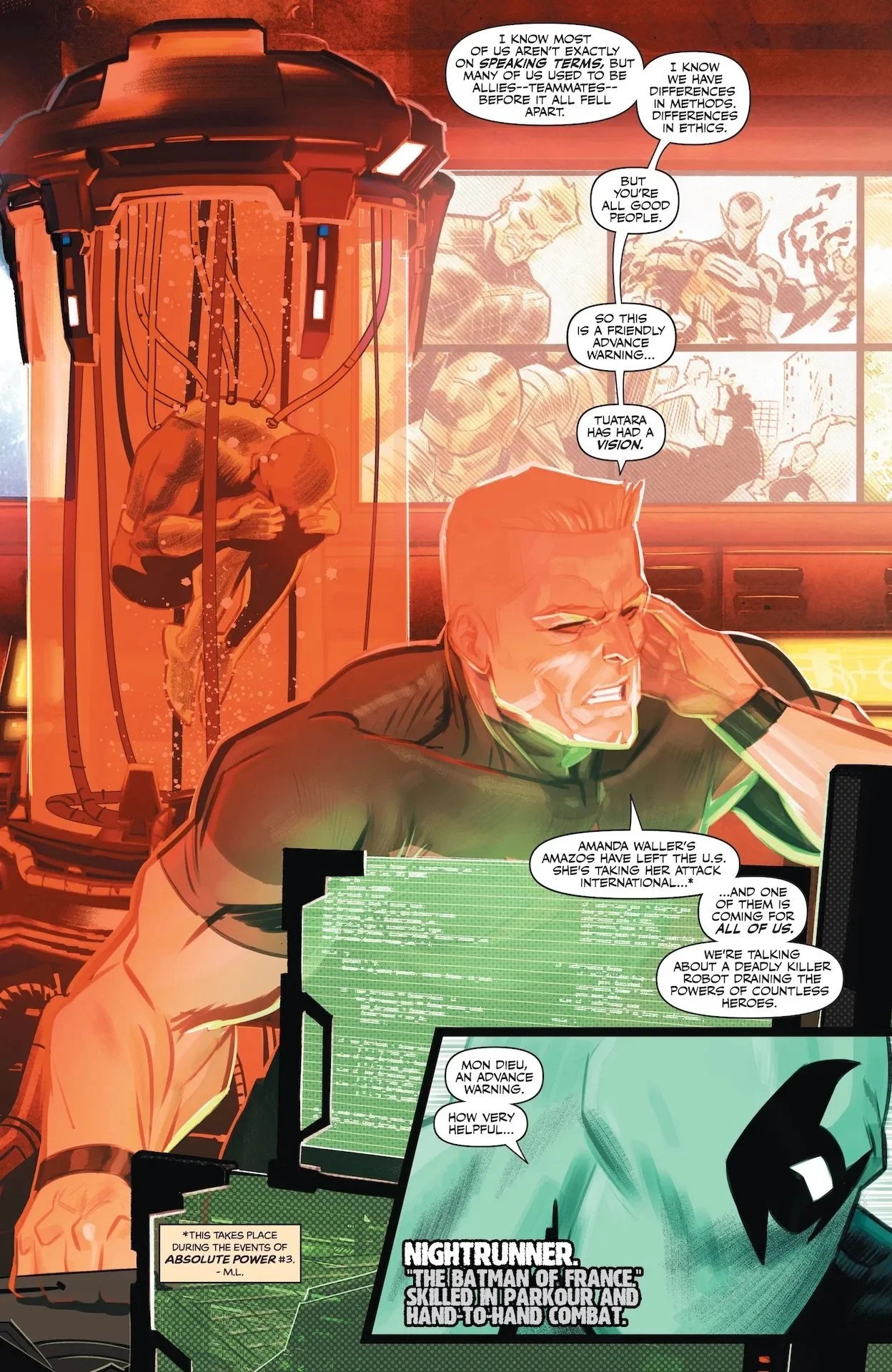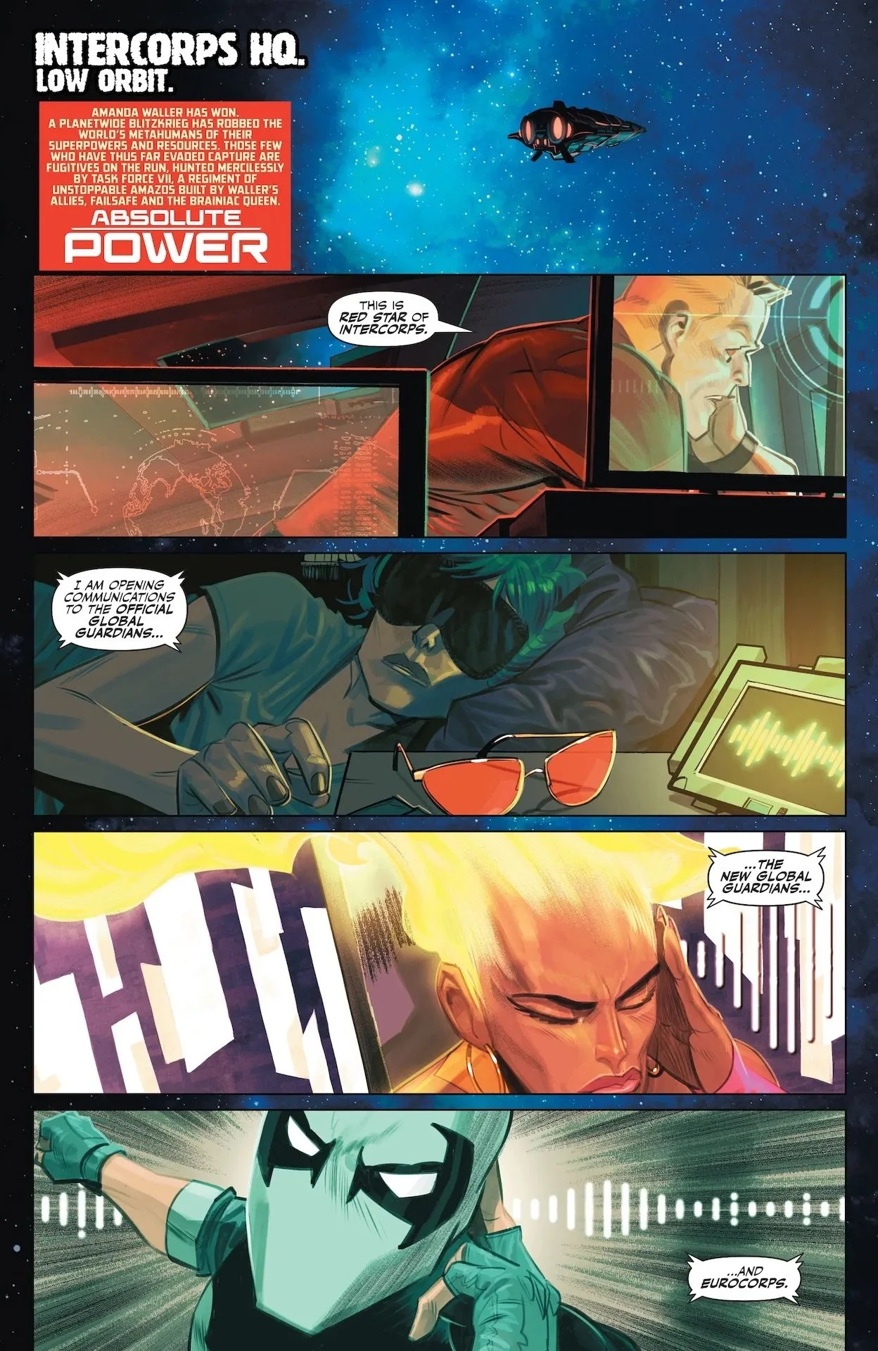 CAN THE POWERLESS HEROES WITHSTAND GLOBAL GUARDIAN?! The Trinity of Evil achieve total domination over Earth's super-powered protectors? But what of the heroes NOT of this Earth? Just as Kal-El of Krypton before him, J’onn J’onZz of Mars has felt the devastating effects of Waller's TASK FORCE VII fighters as they continue their mission of siphoning metahuman power across the globe...but hope glimmers even in the face of the ghastly GLOBAL GUARDIAN, and a new generation of fighters from every corner of the world have joined forces to rise up! It's the finale of TASK FORCE VII as we near the grand finale of the epic ABSOLUTE POWER event!