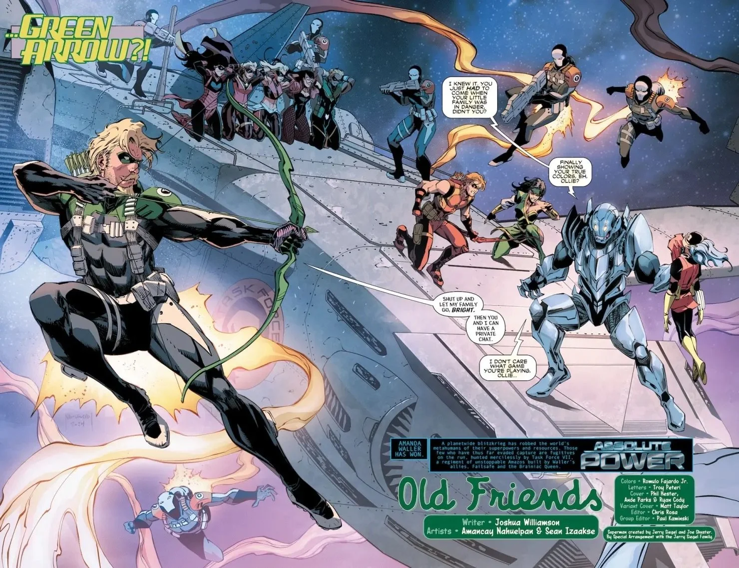 ABSOLUTE POWER TIE-IN Team Arrow is up against a wall. And it's not Amanda Waller. It's her agent of destruction BRIGHT. Who is Bright and why does he hate Green Arrow and his family? Ollie must decide if he should save his family, even if it means they become locked up in Waller's super prison!