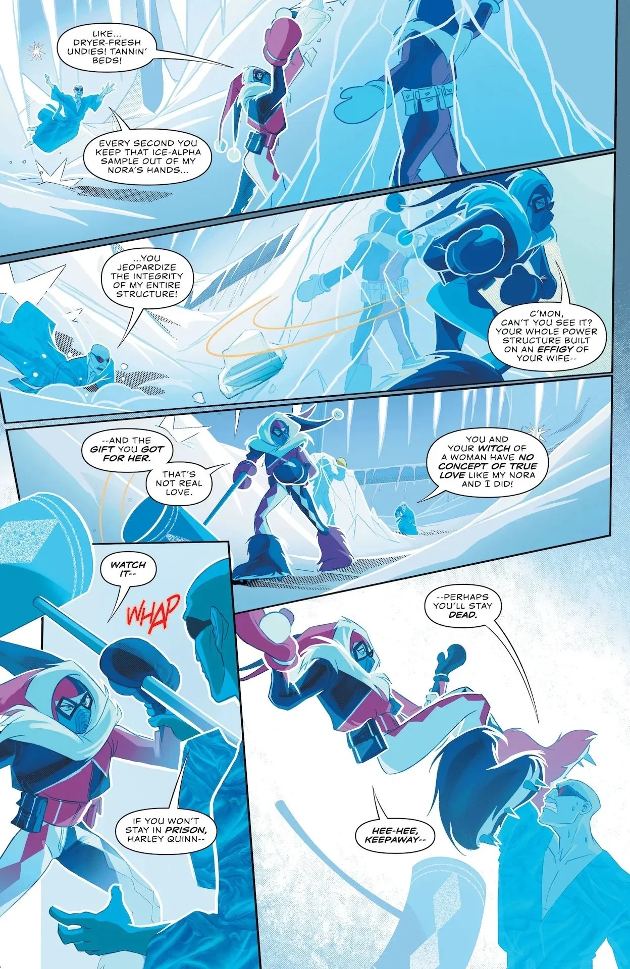 CAN HARLEY ICE OUT MR. FREEZE? OR WILL GOTHAM BE LEFT OUT IN THE COLD? Brrr! My buns are freezin' off! With the threat of Gotham City being buried under five hundred metric tons of ice, your ol' pal Harley Quinn (me!) has no choice but to face down against both the icecube lickingest bad dood to ever live, Mr. Freeze, and the devious Bat-family-hating Officer Pulaski! Can't a Clown Queen of Crime catch a break?! Alls I want to do is set things right before the citizens of Gotham are turned into icy-cles. Plus, I got one last dream to share with ya before these jabronis start pumping my brain with coffee 24/7 and it's A JUICY ONE! That's right, back by popular demand, MORE BEEFCAKE BARBARIAN QUEEN HARLEY by Alexis Quasarano and this time she's joined by da Fellspyre Chronicles' own Riccardo Federici!