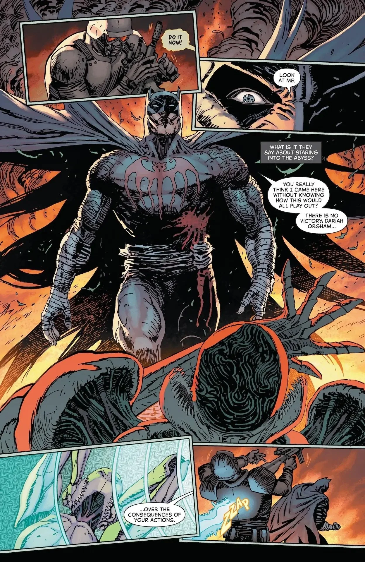 WITNESS THE FINAL CURTAIN OF RAM V’S GOTHIC OPERA! It began with a melody, strange and haunting, drawing Batman deeper and deeper into a demonic odyssey. From the sewers under Gotham to a hallucinatory desert, from the brink of death to a strange rebirth, from the iron grip of order to the deadly blades of chaos, it has all led to this moment. And now, the curtains close on Ram V's epic Gothic Opera!