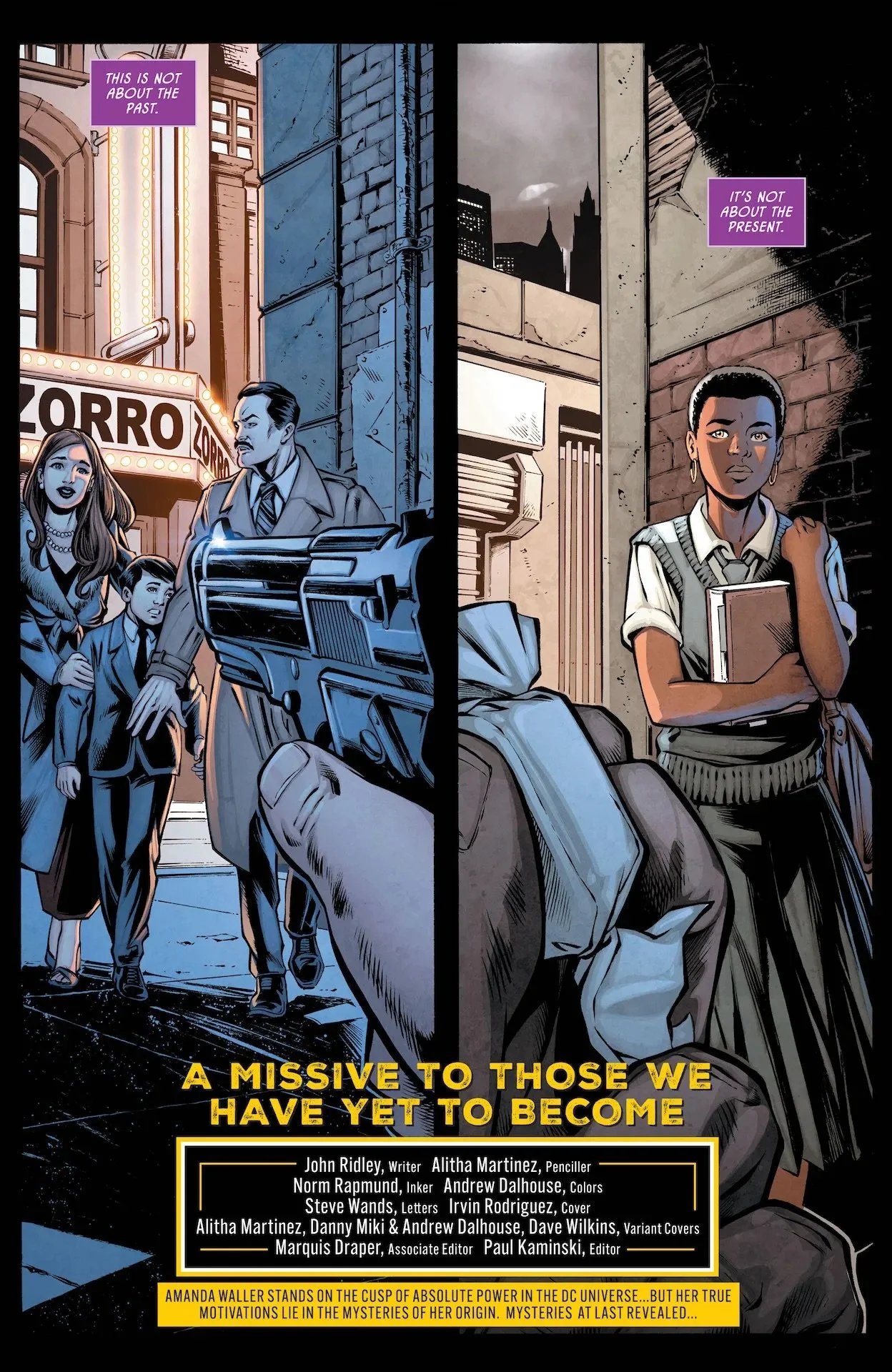 In Absolute Power: Origins, Academy Award-winning writer JOHN RIDLEY and fan-favorite artist ALITHA MARTINEZ will tell the tale about how one woman lost everything she held dear...powerless beneath the forces of senseless acts of chaos. The path of vengeance would bring her to two simple words that would change her life--and the lives of the entire DCU--forever: NEVER AGAIN.