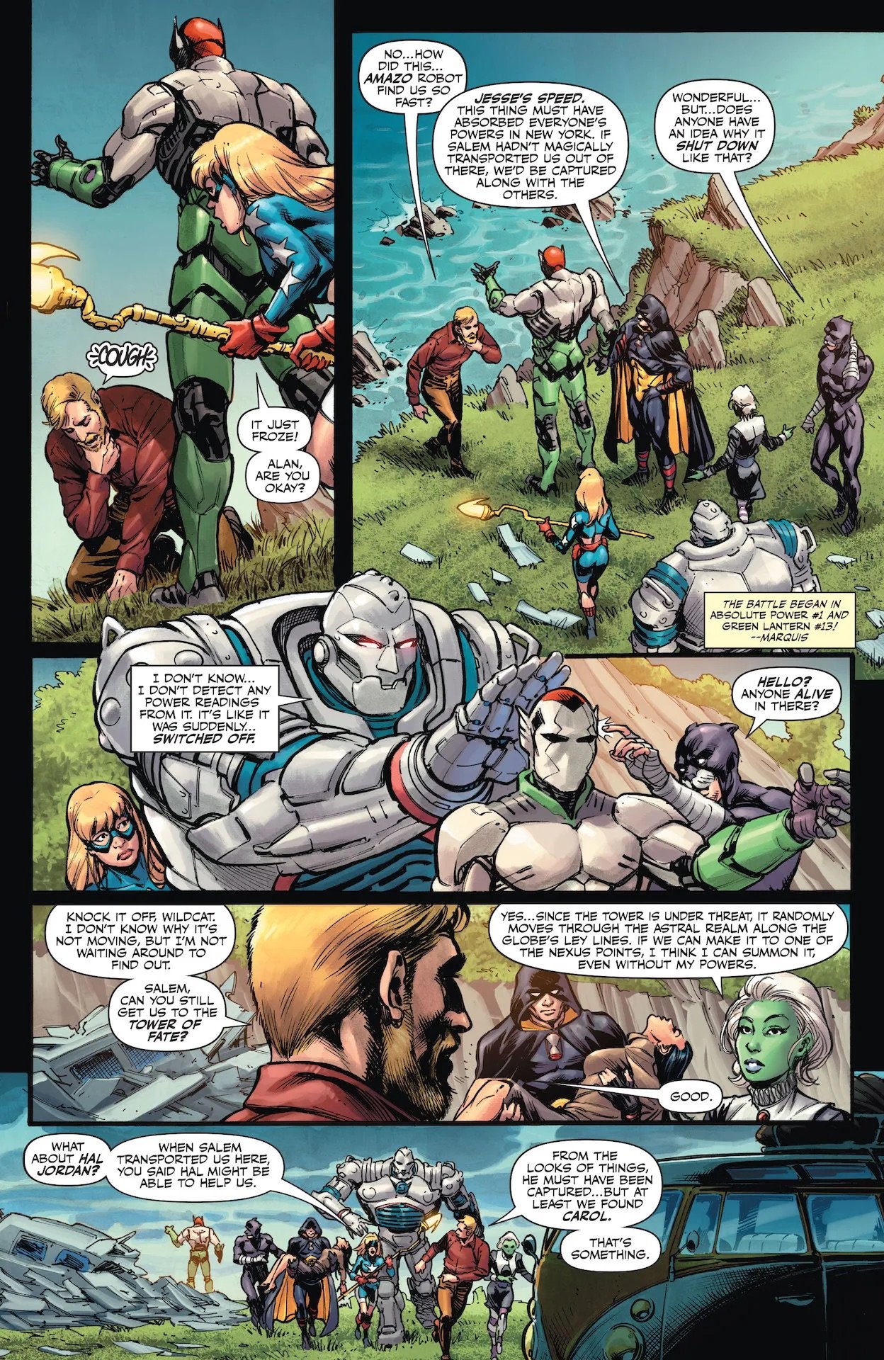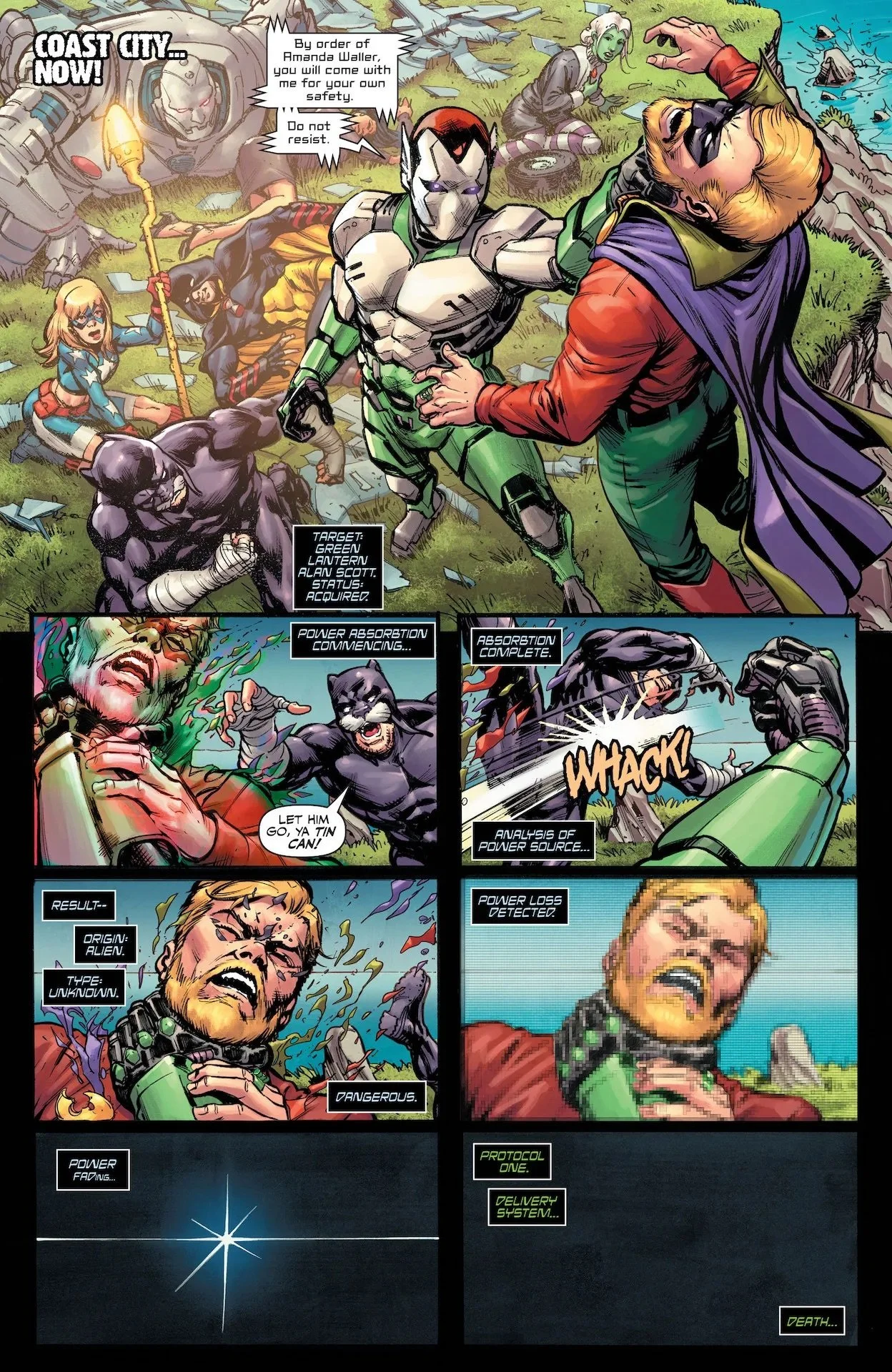 After capturing and absorbing the powers from the JSA, Jadestone is compromised by Green Lantern Alan Scott's willpower. Suddenly faced with the concept of free will, does JADESTONE continue to execute Waller's orders or have a change of heart? Meanwhile the remaining JSA members attempt a rescue mission to retrieve their teammates and escape to the Tower of Fate!