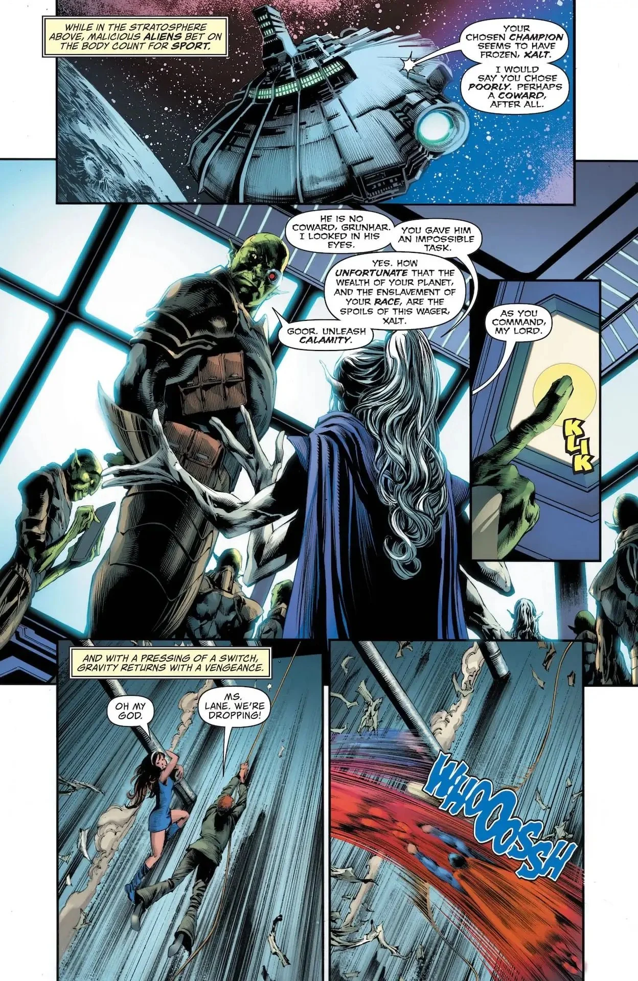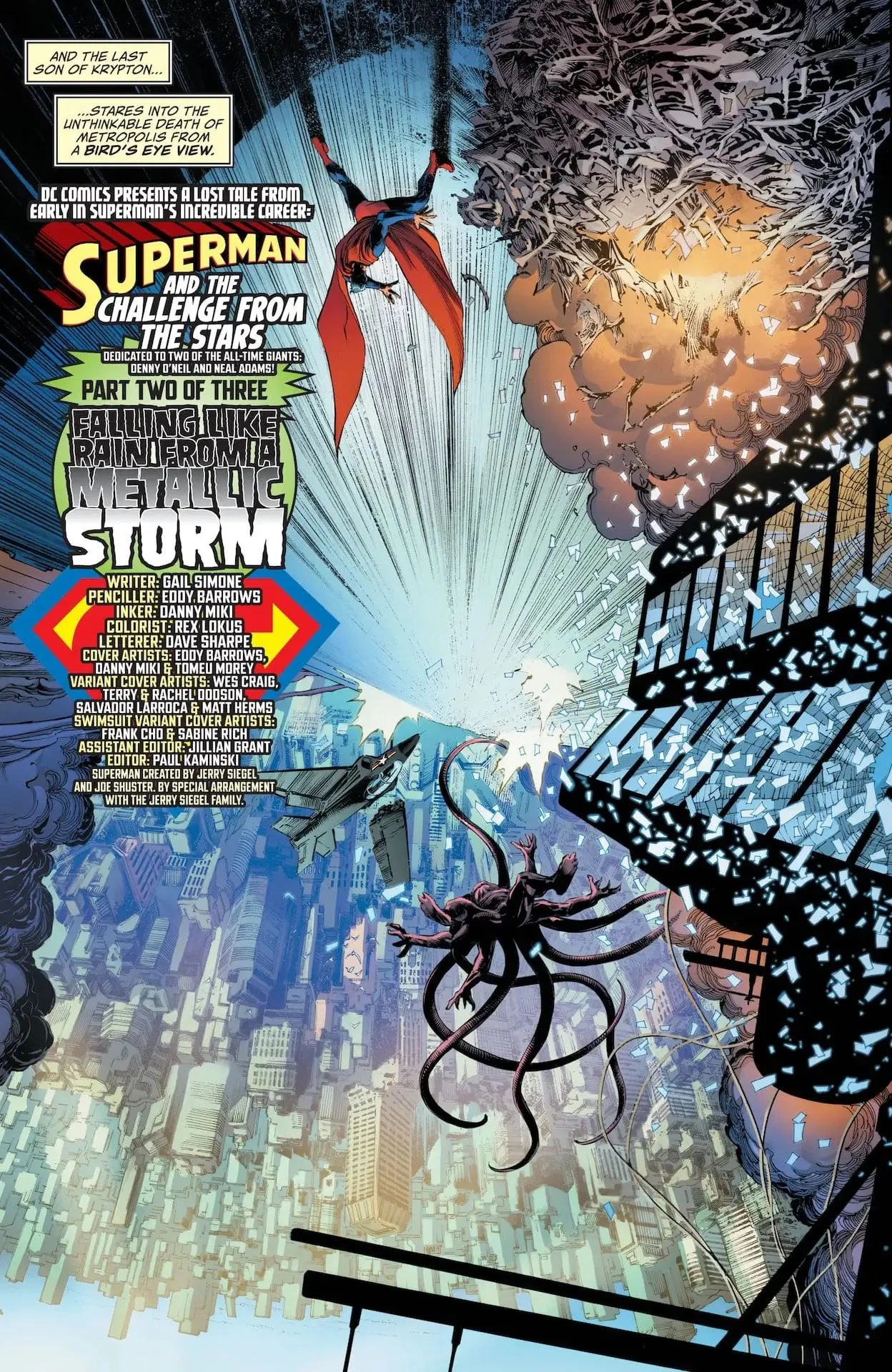 Things go COSMICALLY wrong as Superman finds himself the champion in a galactic battle between TWO alien empires! The entire EARTH is held hostage as Superman fights to save CONTINENTS from utter destruction! Loads of guest stars, but as you haven't seen them in a VERY LONG TIME! All this and LOTS MORE in part two of SUPERMAN AND THE CHALLENGE FROM THE STARS! Plus, Lois Lane, Editor-in-Chief, sidelines reporter Clark Kent. Will their marriage survive tough love?