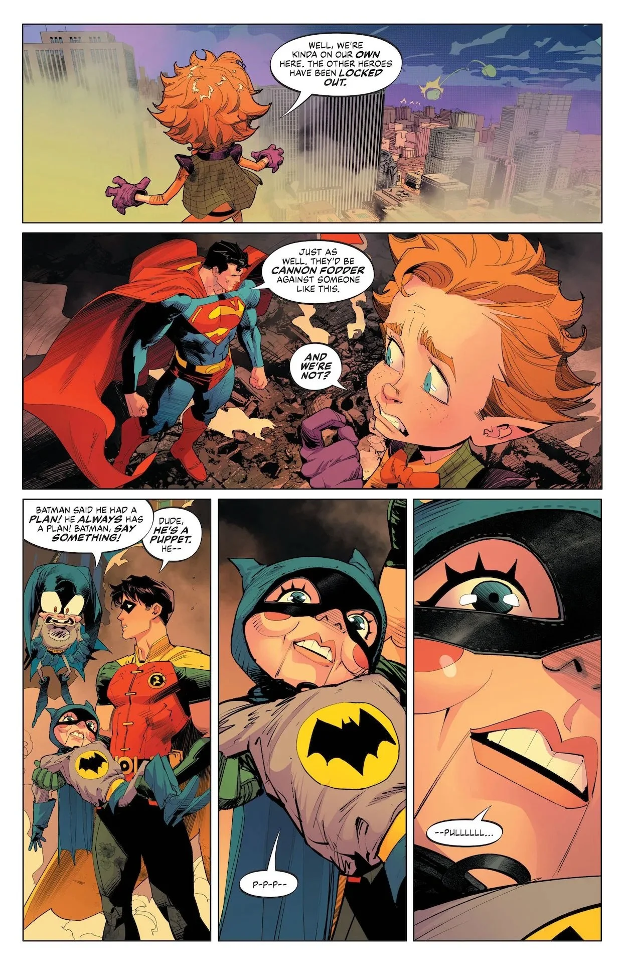 The grand finale to Impossible is here, and it...well, it is as insane as you think it would be. First of all, we've got this big DOOM-MITE guy over here, check him out...he's about to eat Batman and Superman! What would that even taste like? Let's hope our heroes never let him find out, as the Man of Steel and the Dark Knight save the fifth dimension from IMPLOSION or die trying!