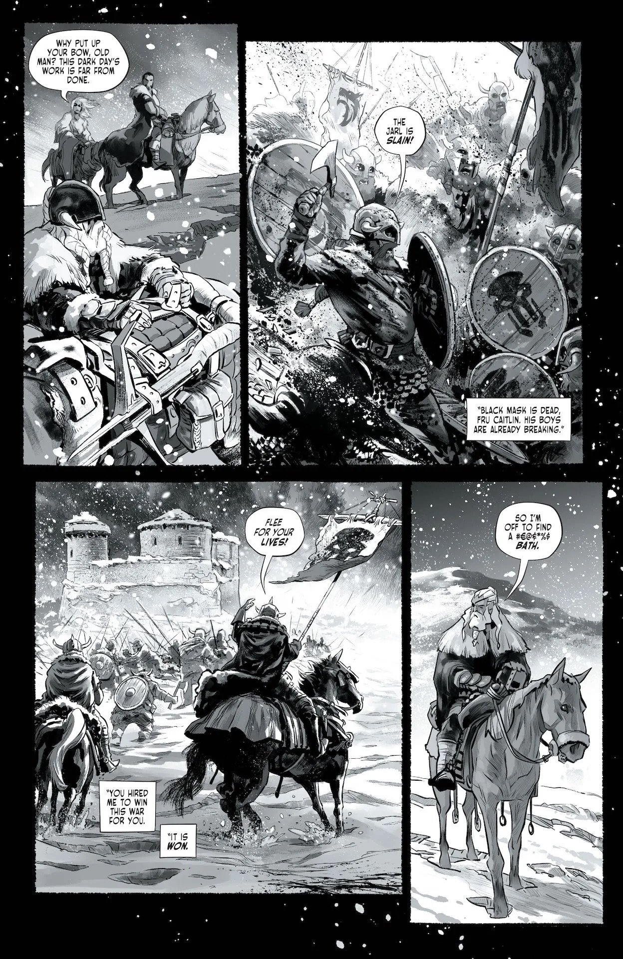 The snow falls thick, blood runs black, and color itself is only a distant memory. The legendary assassin Deathstroke stalks a frozen wasteland, killing for coin among a nation of ever-warring jarls. But when our murderer for hire finds himself cast in the role of reluctant guardian, will he fight to end the icy curse destroying his land or be consumed by the sins of his own dark past? The red-hot Dark Knights of Steel epic expands into bone-chilling new territories with new surprises in store!