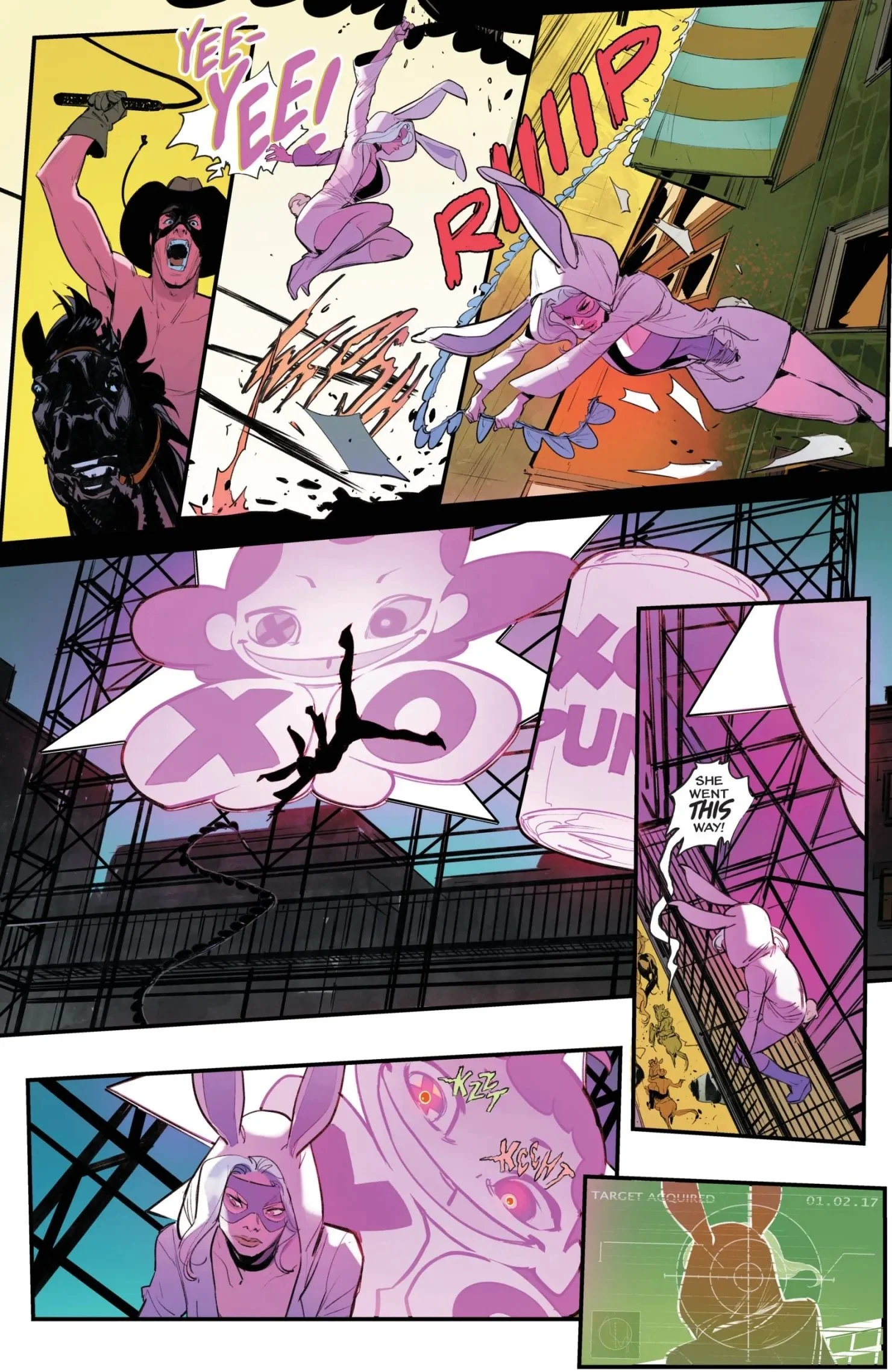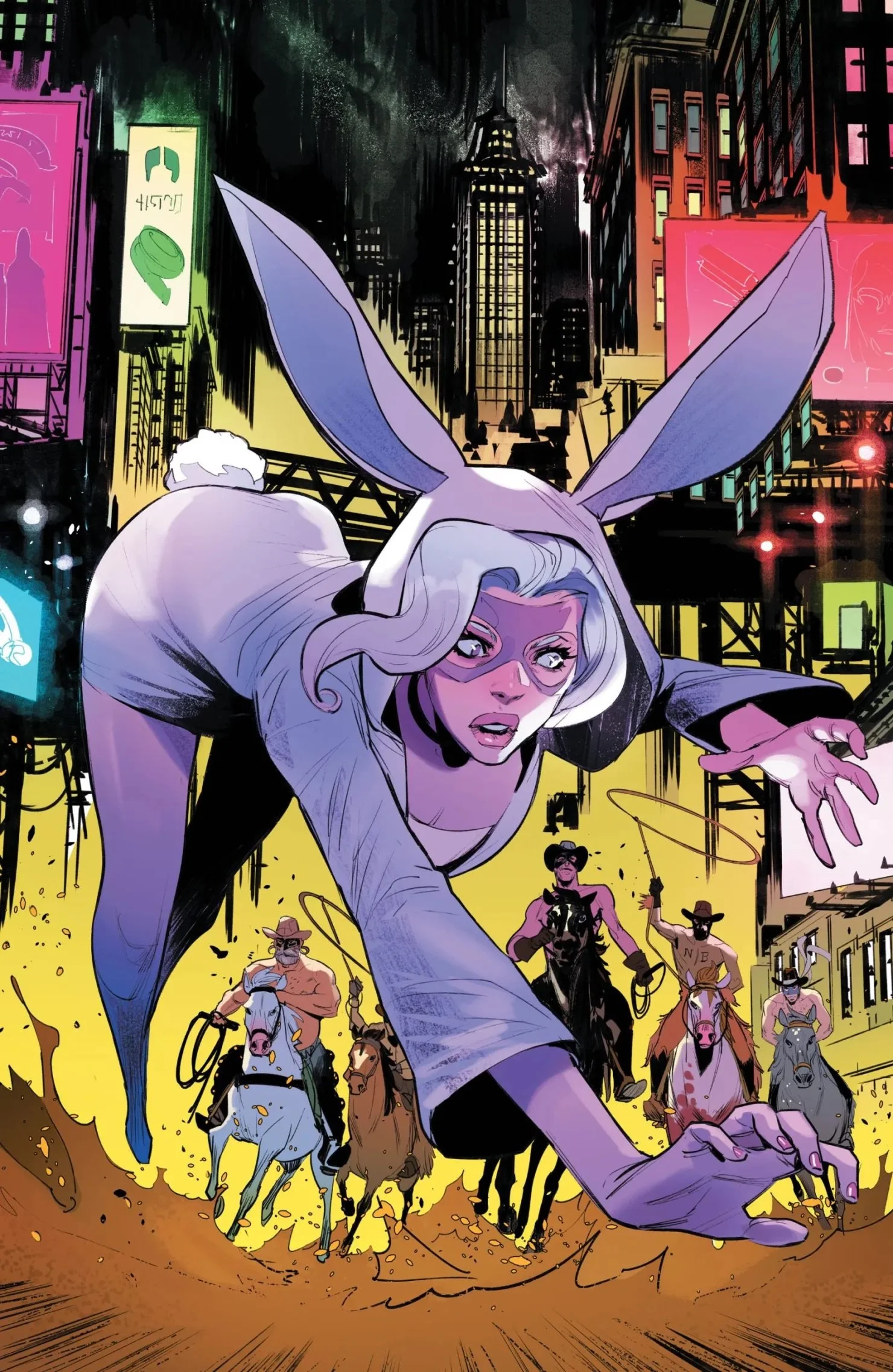 When a violent and highly illegal energy drink-sponsored hunting operation threatens the lives of wildlife and the residents of Gotham City alike, the only ones fit to save the day are the criminal trio of Catwoman, Poison Ivy, and Harley Quinn. Back together again for the first time in years. Sometimes the only way to fight bad is with even worse! With special appearances by White Rabbit, Punchline, and introducing the himbo cowboy henchmen sensation soon to be sweeping the nation known as The Nasty Boys! Get your chaps, spurs, and hats out cause it's hunting season! By the end of story you'll be covered in guts, goo, and grit! Featuring the talents of Leah Williams, Matteo Lolli, Daniel Hillyard, and more! If you're not chanting Hot tubs and headshots and hotties, oh my! by the end of this four-week-long series, you're doing it wrong!