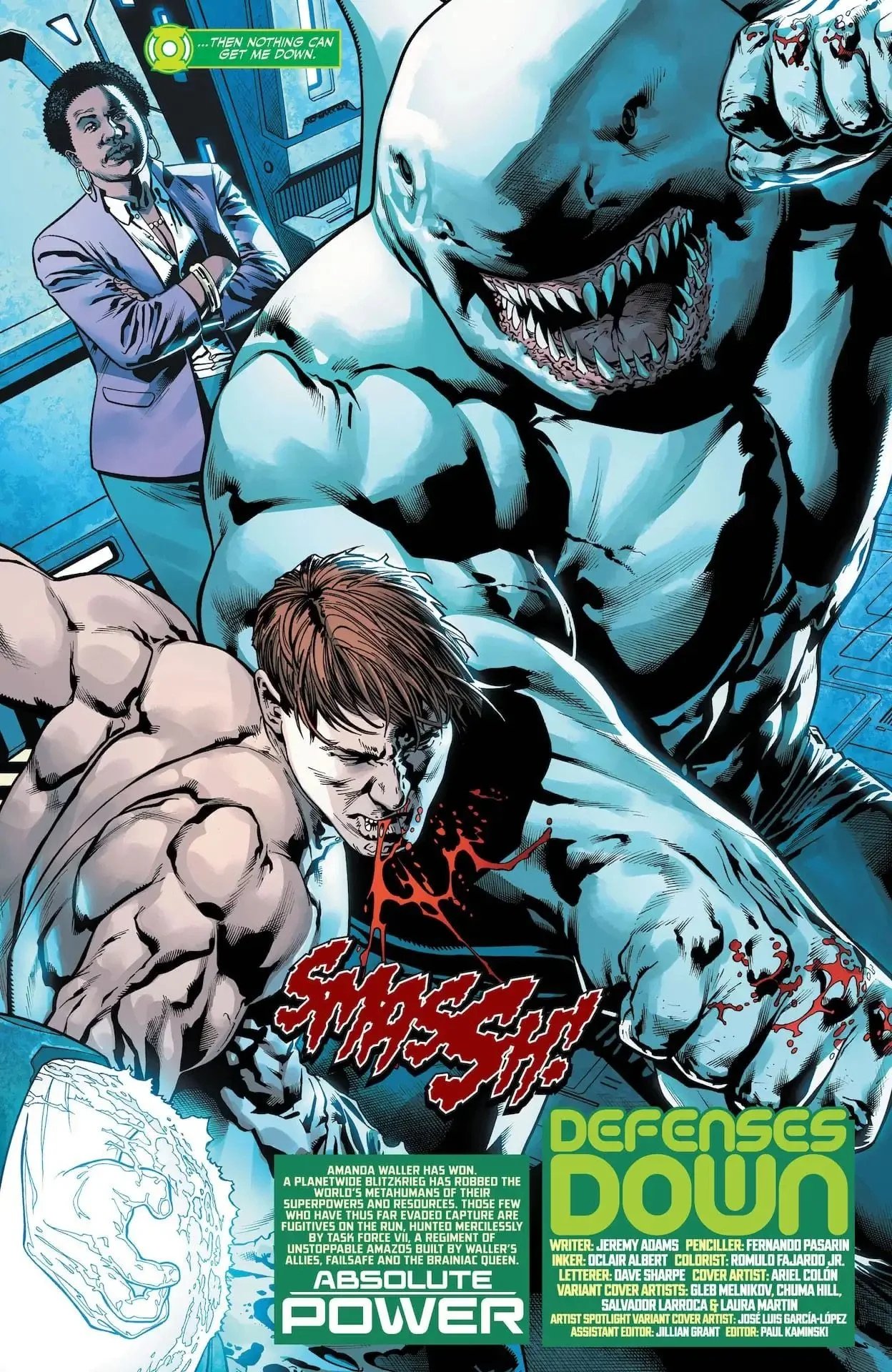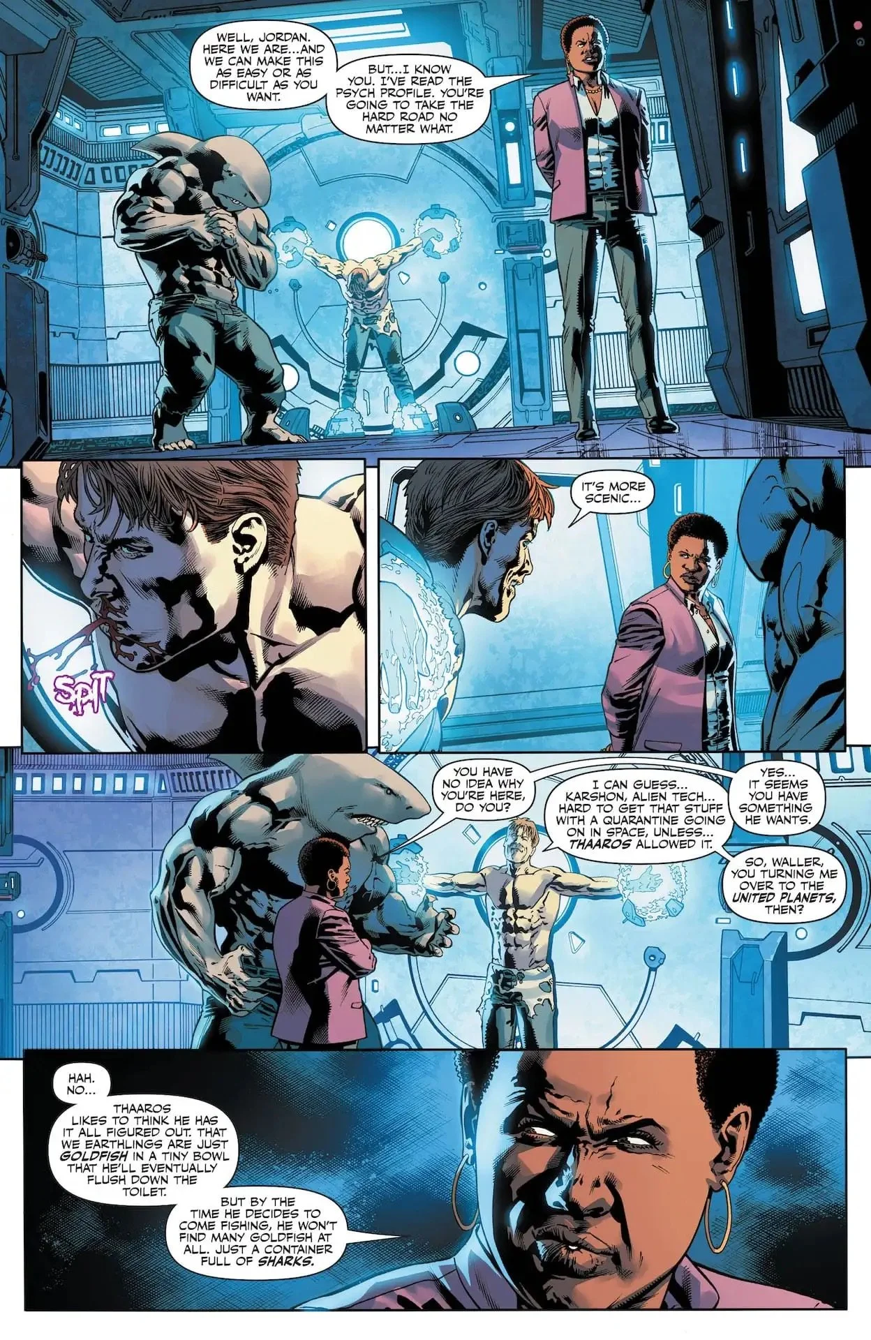 HAL JORDAN IS THE LATEST CASUALTY OF AMANDA WALLER! De-powered and back on Earth, Hal needs to find a way to get to the new power battery and recharge--but Thaaros has other plans, and now Hal is being hunted by the most dangerous aliens on the planet! PLUS: The secret origin of LORD PREMIERE THAAROS, ruler of the United Planets, is at last revealed!