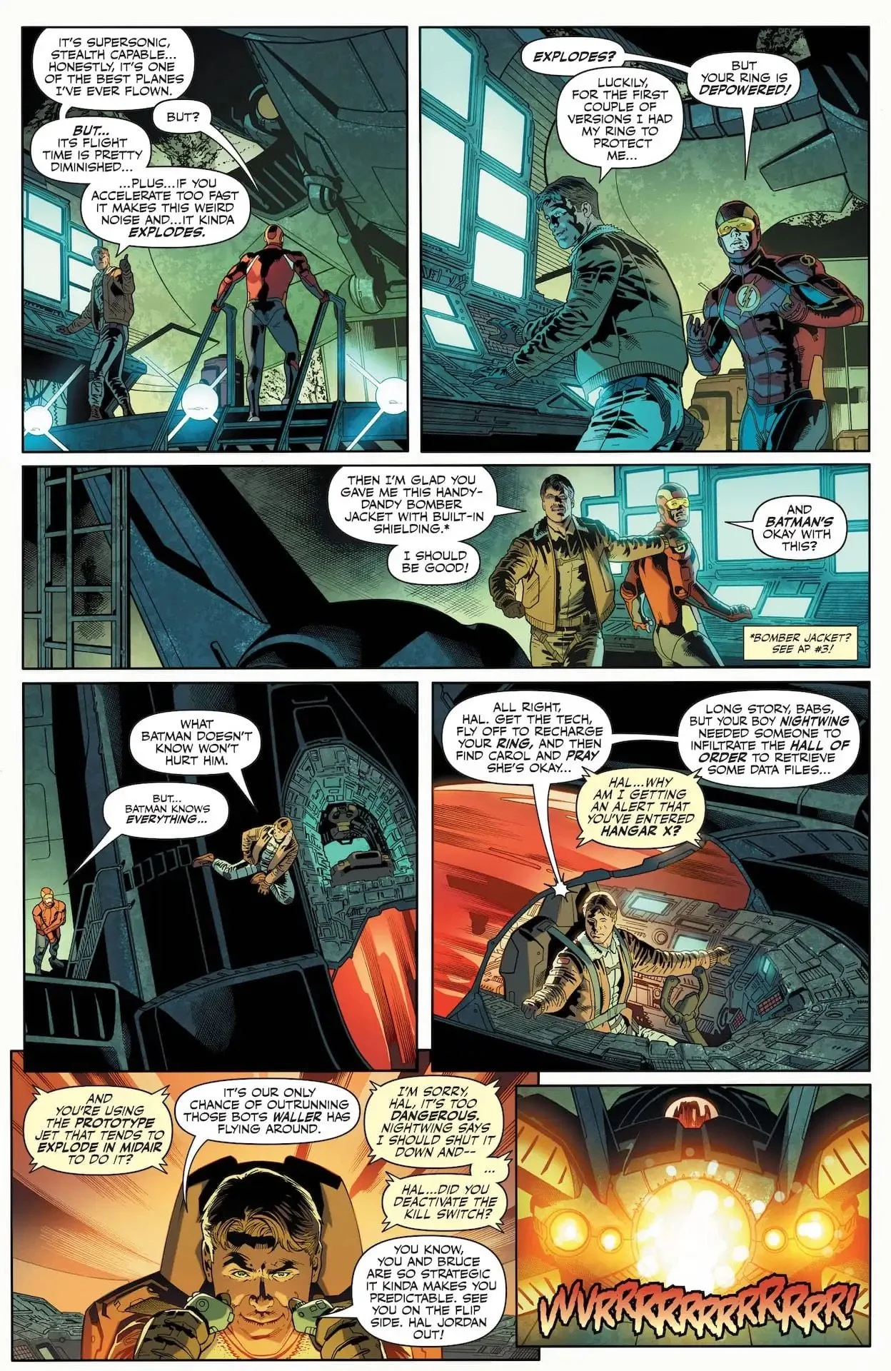 ABSOLUTE POWER TIE-IN! Hal has a problem... He needs to charge his ring but the entrance to the Power Battery is a continent away. Plus, the skies over Earth are patrolled by Amanda Waller's modified Amazos, which leaves Hal with one choice...to ride into the Danger Zone! Don't worry, he totally got permission to use the Batplane for this mission *wink*. Plus, John Stewart's tale from GREEN LANTERN: WAR JOURNAL spills out into the battlefield of a new struggle brewing on the horizon...