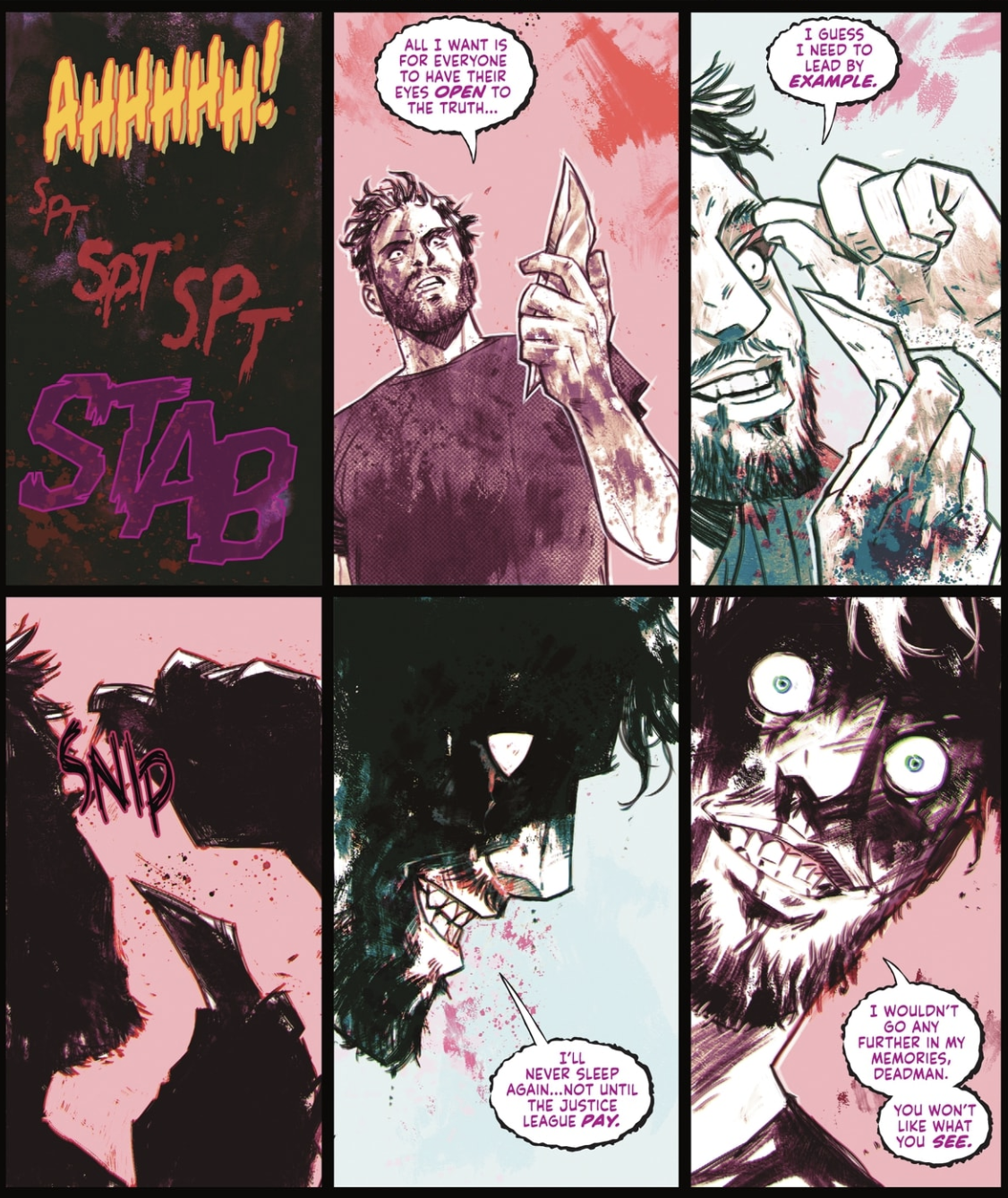 Williamson also provides some much needed character development for Insomnia, showing his evolution from a recovering mental health patient to the main bad guy of the event through a flashback scene we visit via Deadman’s mental connection that was established earlier in the event. It’s been a slow build up for a villain that has managed to effect the entire world, but I’m not sure it’s completely paid off yet. I’m still not sold on his vendetta against the Justice League.