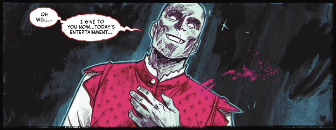 Deadman continues to shine as the breakout star of the event and much of that is due to Williamson’s use of the character as a wall-breaking narrator and unlikely (an undead) hero while DC’s other superheroes are under Insomnia’s spell. It’s apparent that Williamson is having a ton of fun writing for the character and it’s on full display in the dialogue he writes between Deadman and Damian Wayne. These two characters are forced to work together and we spend time with the two discussing relationships, life, and sacrifices. Williamson crafts a chemistry between the two that doesn’t resemble two best-friends, but a mutually beneficial partnership that includes moments of humor and sincerity.