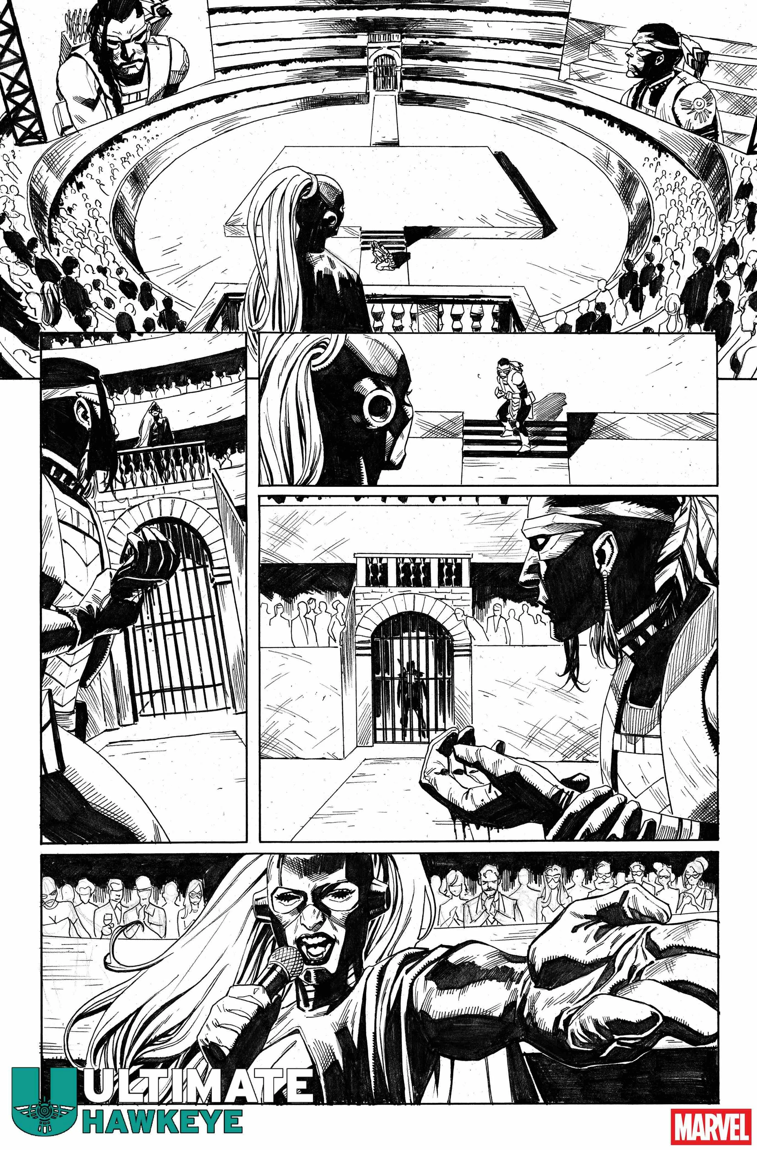 Marvel shared additional cover art and a first look at interior art for Ultimate Hawkeye #1, the upcoming spin-off of The Ultimate staring fan-favorite Charli Ramsey, written by Taboo of the Black Eyed Peas and B. Earl and drawn by Michael Sta. Deniz Camp and Juan Frigeri, the team who created Charli, will also provide a framing story. The special one-shot includes cover art by David Mack, Lee Garbett, Leirix, Declan Shalvey, Ejikure, and Carmen Carnero.
