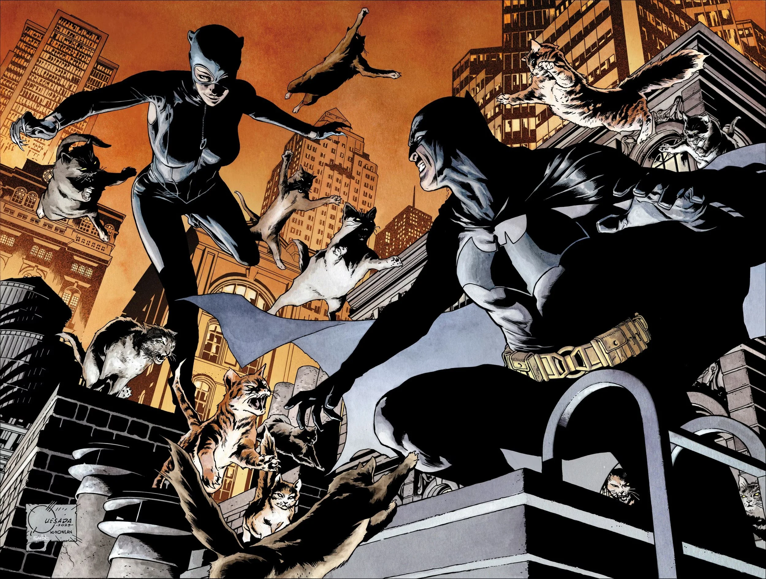 Artwork from Joe Quesada (pencils), Kevin Nowlan (inks), and Richard Isanove (colors) will serve as connective variant covers for BATMAN #137 and CATWOMAN #57.