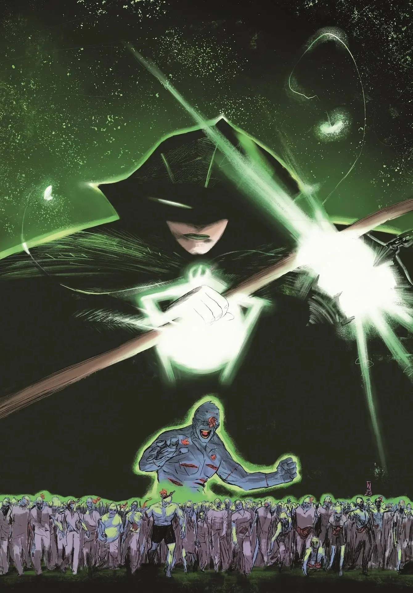 On a postapocalyptic Earth overrun by monsters, the battle between good and evil ended long ago—and evil won. Now darkness prevails as humanity struggles to survive in the corrupted wasteland that remains. Only one hero is said to haunt what’s left of our shadowed cities: the one who wields the mystical green flame that could return light to a shadowy world—the Green Lantern. But she’s been missing for years—and on the isolated island of New England, Solomon Grundy’s undead army only grows larger and more powerful every night.