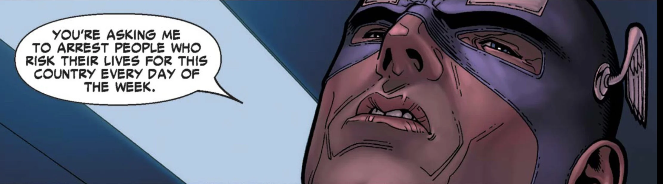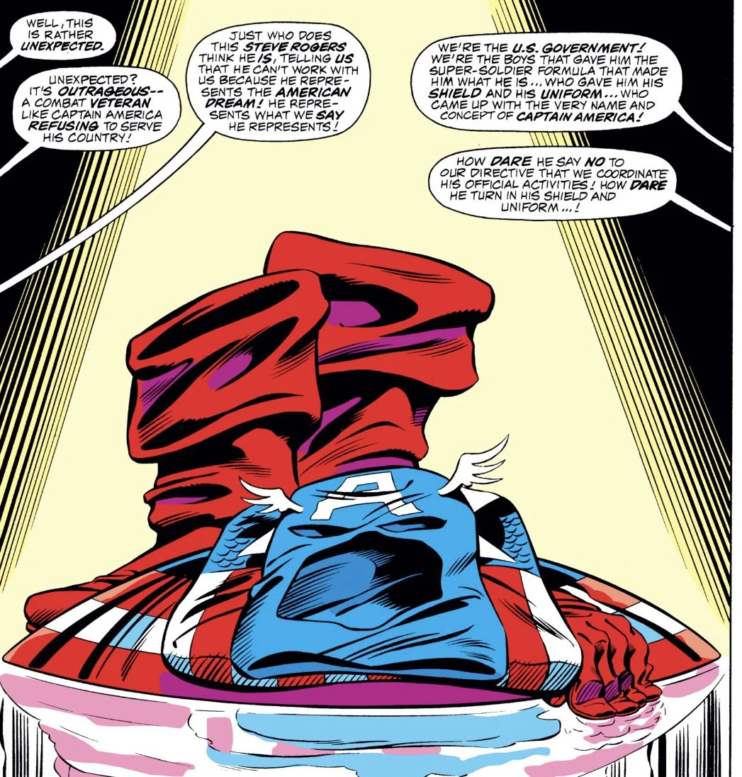 We're also introduced to the US Agent as a new symbol and contrast to Steve Rogers. With this foil, readers were faced with the question of what makes Steve Rogers the hero we all want to believe in, the costume or the ideals?