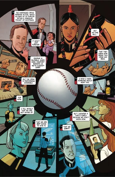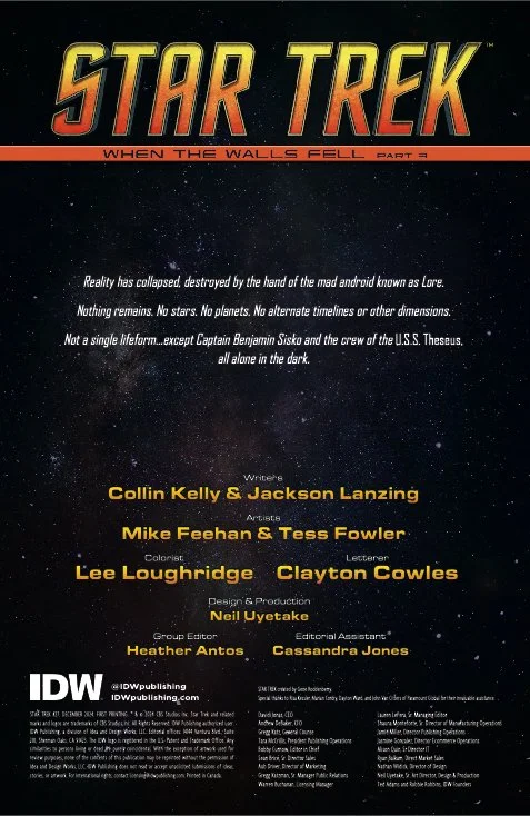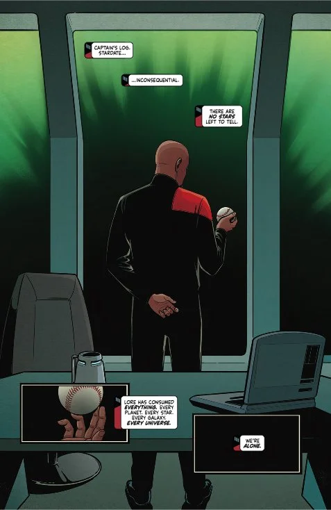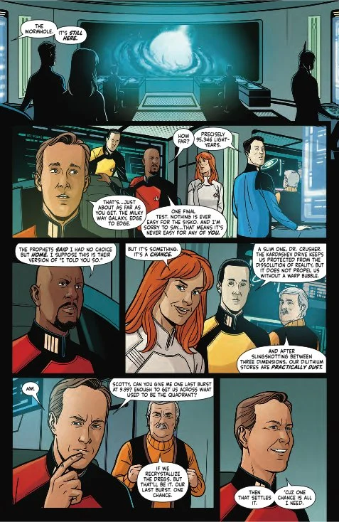 Lore's destruction has consumed everything in the universe except the USS Theseus and the Celestial Temple. In one last maneuver, the crew uses every ounce of power left in their main systems to shoot their ship across the galaxy to the temple. While their ship flies, the crew has a Louisiana-style supper and heal wounds between them before they must say their final goodbyes, for Benjamin Sisko is of Bajor, and he must return home if Lore is to be stopped.