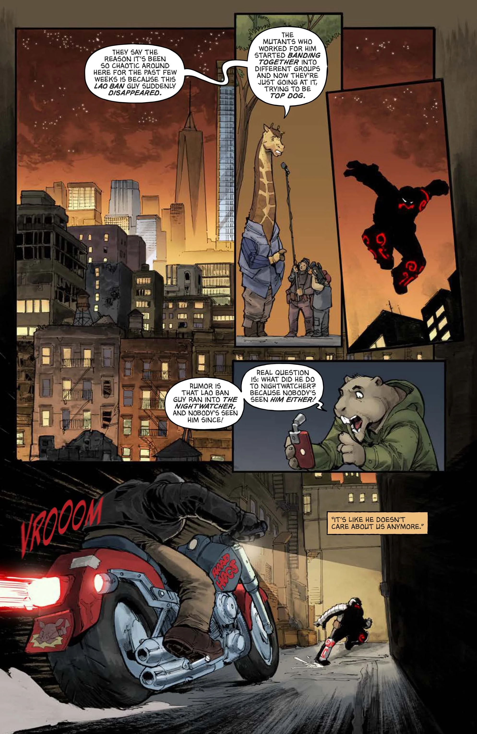 Nightwatcher is beaten and heartbroken from the epic conclusion to the first arc of the series. As she puts the pieces of her life back together and debates whether or not she wants to continue being the Nightwatcher, Lao Ban tries to offer her a place in his future. A future that is great for mutants and awful for everyone else. And in her wounded state, Nightwatcher gives it serious thought. Is her soul in the balance and Lao Ban's for the taking?