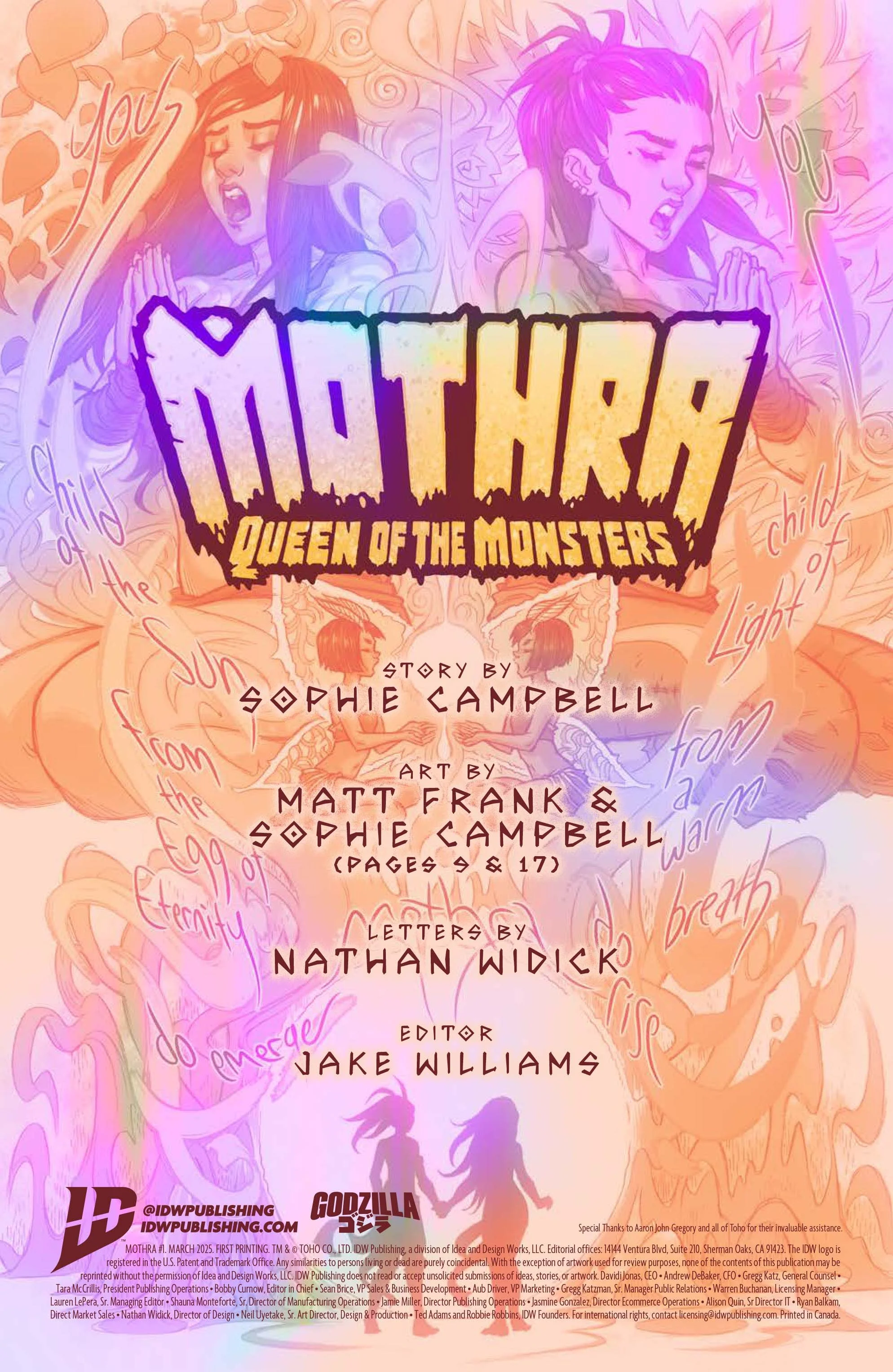 Mothra has fallen after a fearsome battle with a terrifying new kaiju, Antra. Without its protector, the world has entered into a state of desolation. Kaiju roam freely, and what remains of humankind has been forced into hiding.But all hope is not lost! Mira is a young woman living in the wasteland, who believes she lost her entire family in Mothra's final stand. That is, until her missing twin shows up at her door with two fairies! If her sister is to be believed, Mira might hold the key to the rebirth of Mothra and the Earth's return to normalcy. They just have to travel back in time and get its egg from the Jurassic period first.