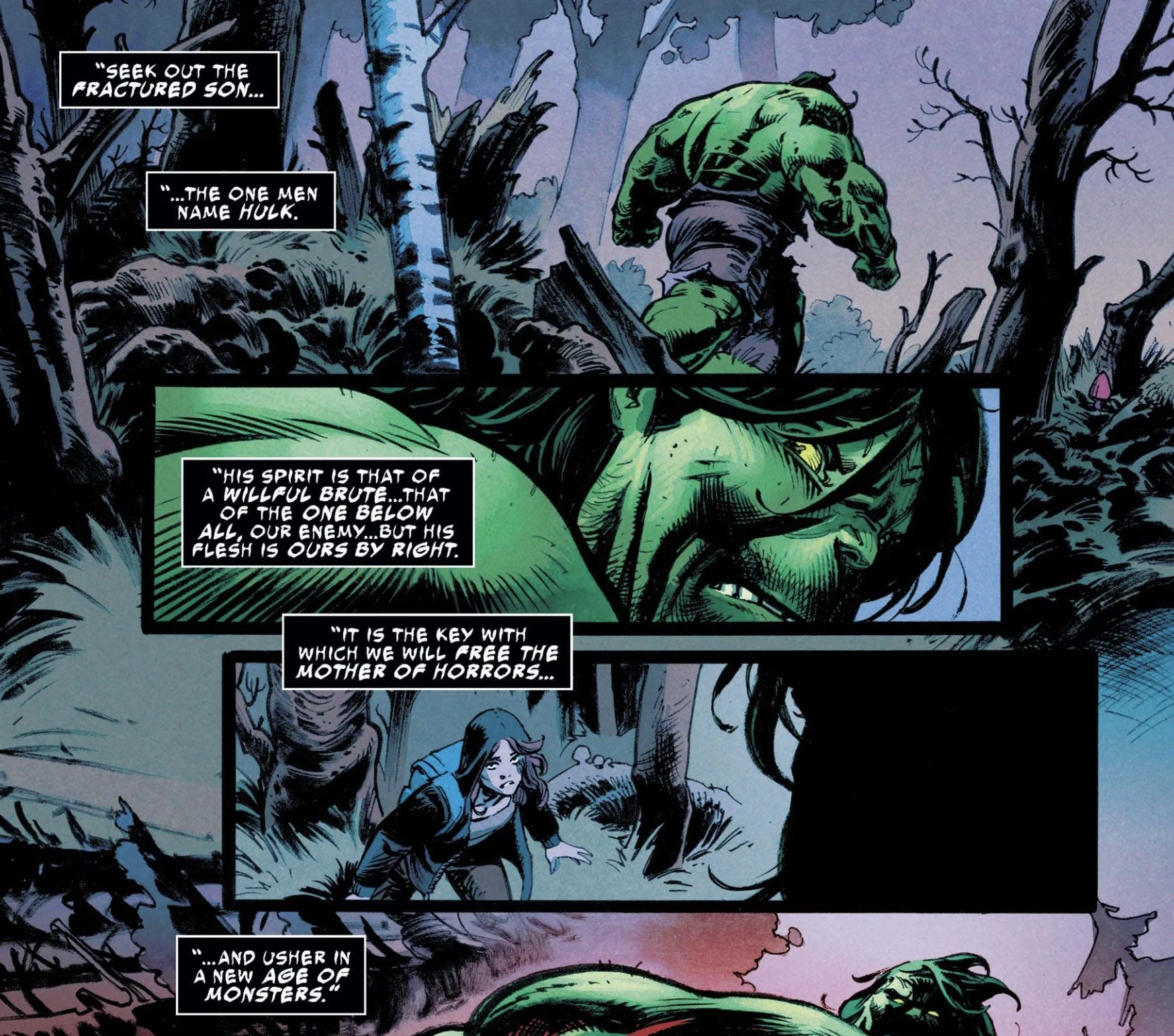 The rest of the book plays out as both the FBI & the ancient entities try to hunt down Hulk. The FBI to contain Hulk from causing more damage, and the ancient entities so that they can use him for their own nefarious purposes — to serve their “Mother of Horrors” and bring in the Age of Monsters!