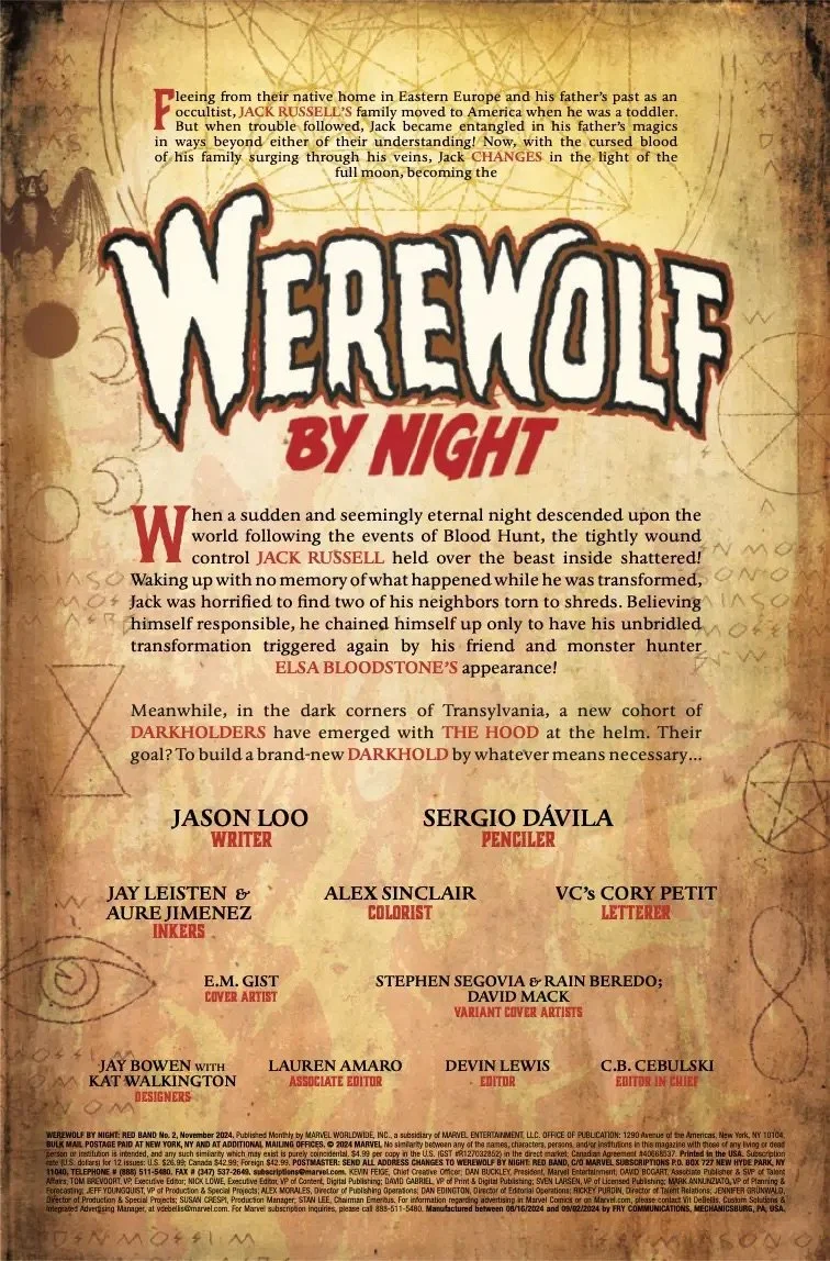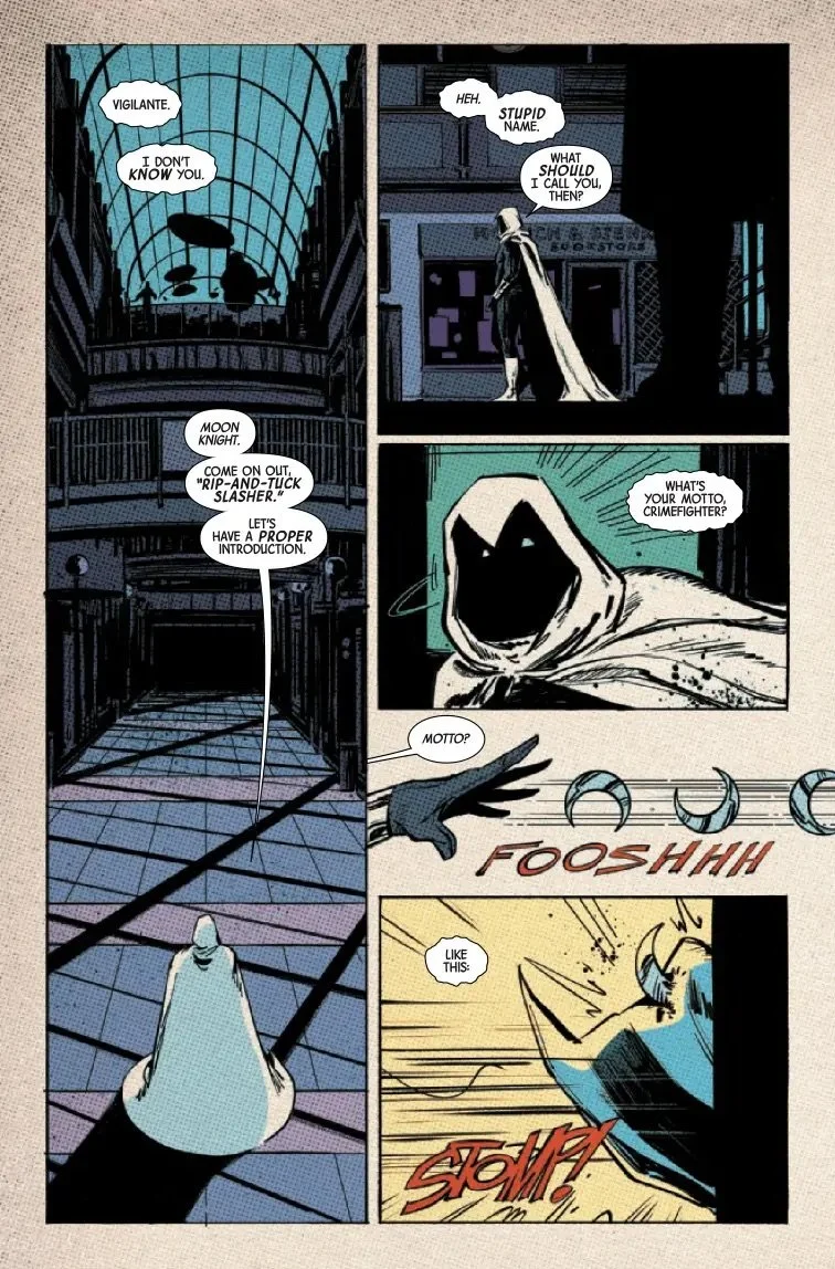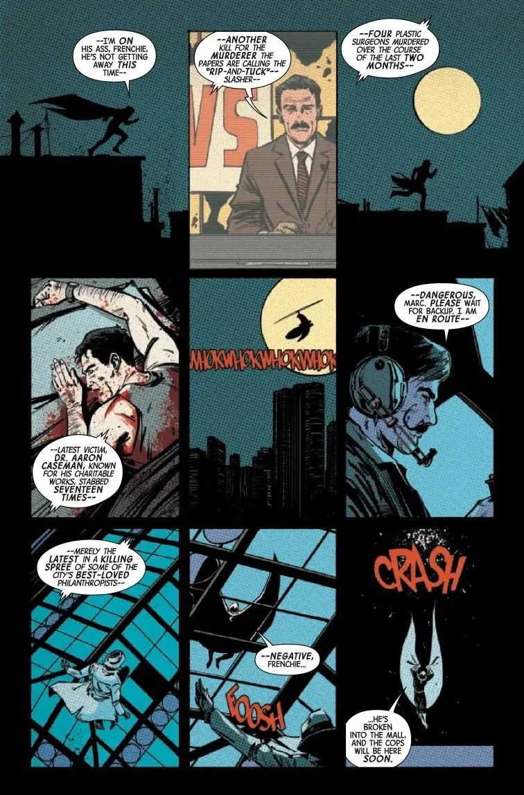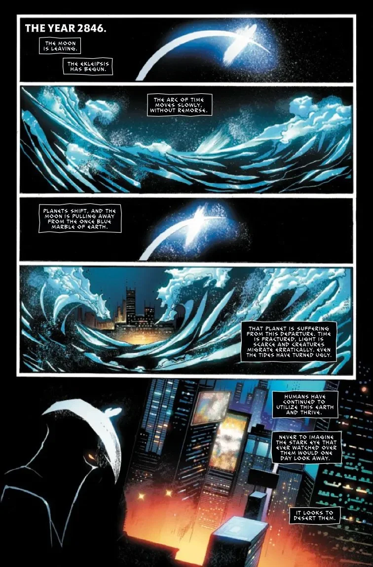 The saga of the MOON KNIGHT spins on, as JED MACKAY, writer of the smash-hit MOON KNIGHT and VENGEANCE OF THE MOON KNIGHT series revisits vintage Marc Spector, with a period piece about peril and punching! THEN: DECLAN SHALVEY returns to the pages of MOON KNIGHT, only this time he's sets his sights on the future! Introducing an ALL-NEW Fist of Khonshu and a crime-ridden vision of a Marvel Universe, both older, grittier and worse for wear than any you've seen before!
