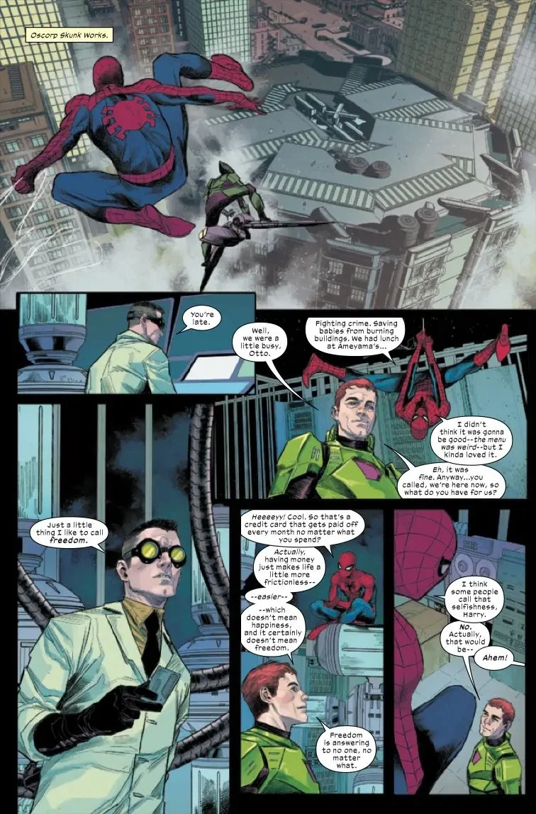 But WHO are the Sinister Six? The first member throws down with Spider-Man and Green Goblin in this action-packed issue! Plus, with Tony Stark's return, Peter must also explore the limitations of his new suit...
