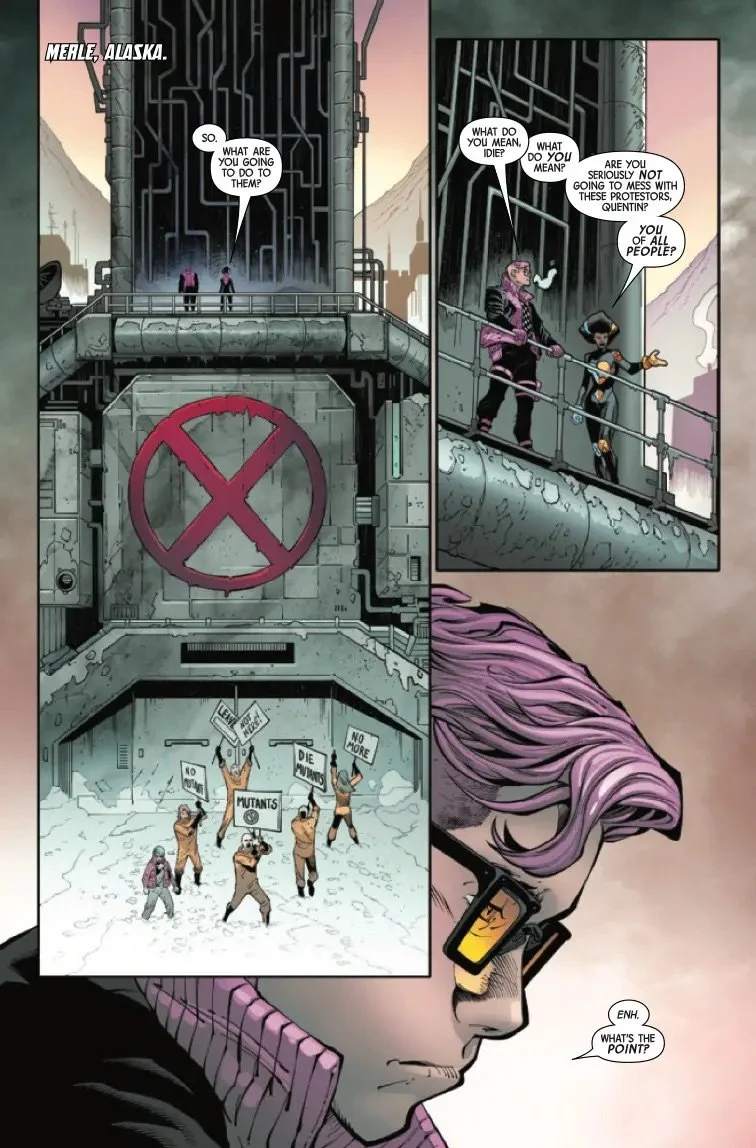 While the X-Men attempt to unravel the globe-spanning conspiracy arrayed against them, Temper and Magik work to investigate one closer to home. Merle, Alaska, holds more secrets than just the ones kept within the Factory, and the two mutants must leave the safety of their headquarters and hit the streets for answers.