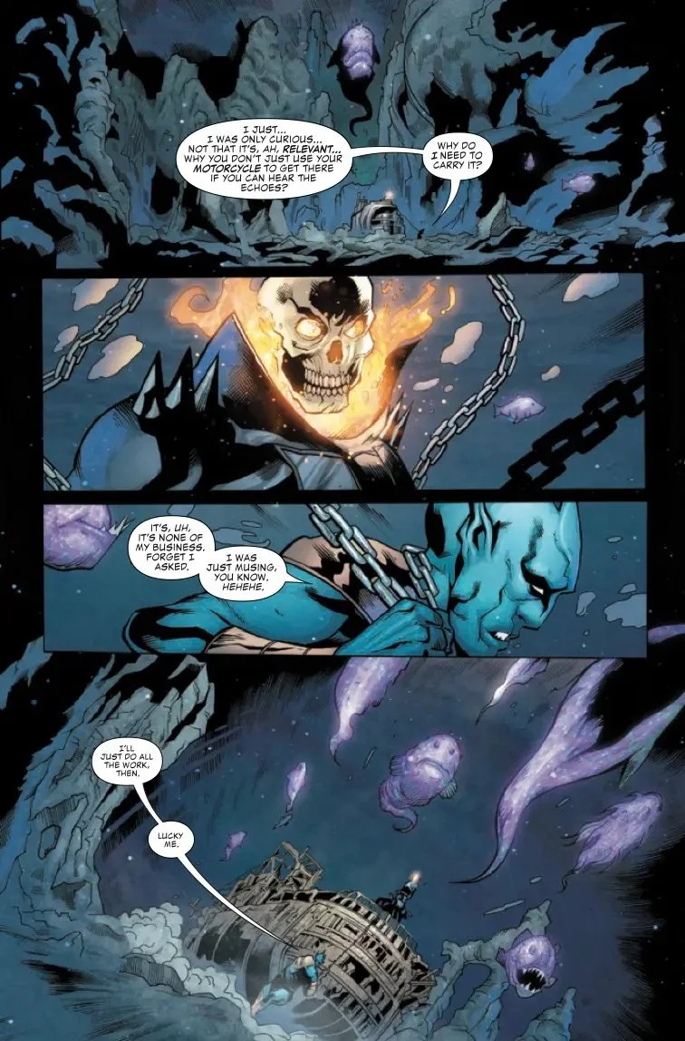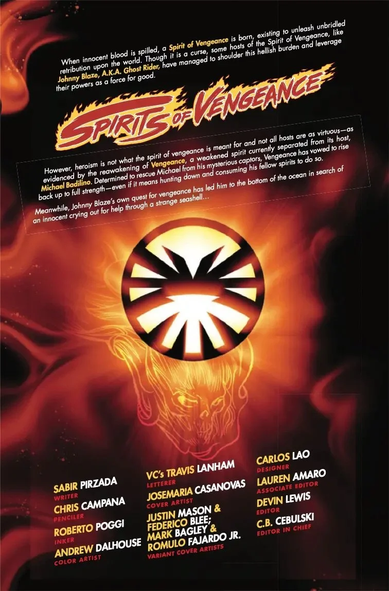VENGEANCE is one of the most powerful and notorious entities in the Marvel Universe! BUT WHAT HAS RESPARKED ITS DAMNING AND WRATHFUL FLAME?! And who will be the object of its deadly gaze next?! MEANWHILE, Johnny Blaze finds himself in ALL THE WAY over his head - and as Vengeance's flame is just beginning to burn again, Johnny's may yet get snuffed out!