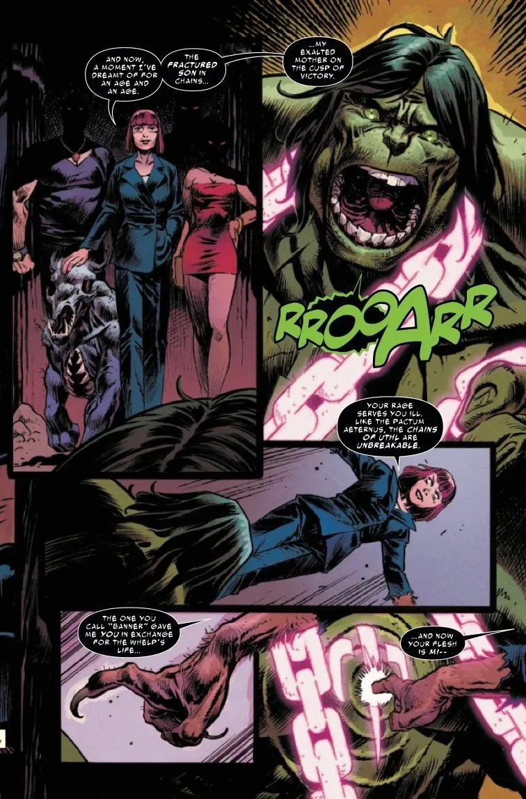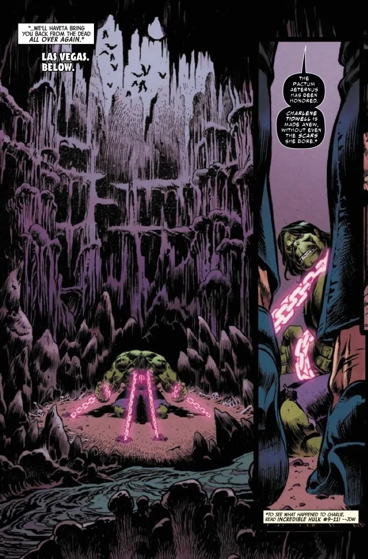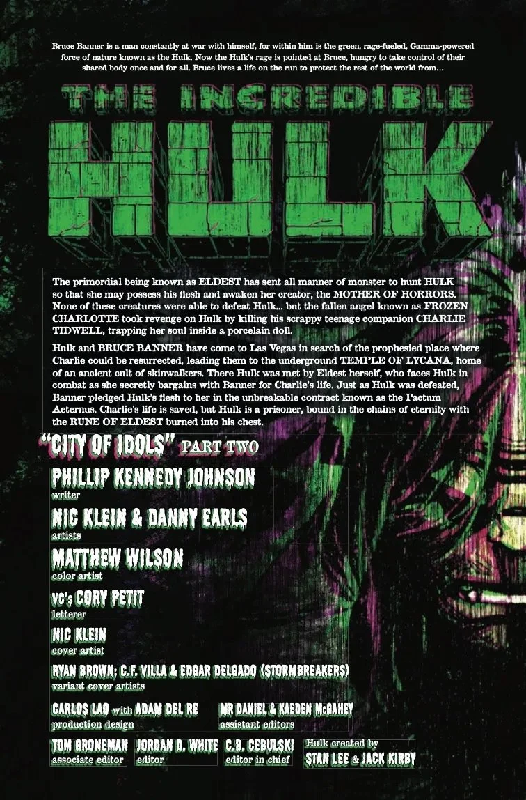 To save Charlie Tidwell, Banner has betrayed Hulk, leaving him a slave of the immortal Eldest! Meanwhile, Charlie finds a mysterious ally inside the cult of LYCANA...one who could help Charlie escape or bind her fate to the skinwalkers forever! This issue leads directly into next month's Incredible Hulk legacy #800 - don't miss it!