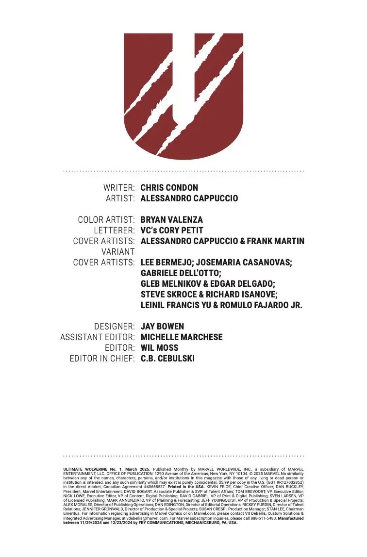 From rising star Chris Condon (That Texas Blood) and MOON KNIGHT powerhouse artist Alessandro Cappuccio comes the story of the ULTIMATE WOLVERINE! In order to maintain control of their corner of the Maker's world, three members of his council-Magik, Colossus and Omega Red-deploy their most lethal asset: The Winter Soldier! But WHO is the weapon behind the mask?