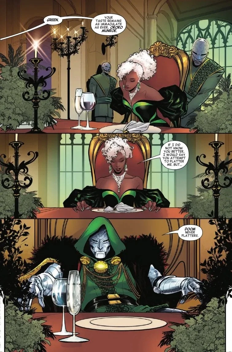 DOCTOR DOOM is the SORCERER SUPREME. He has special plans for Earth's mutants. He would like to discuss them with the beautiful STORM over fine cuisines and expensive wines. What could possibly go wrong? The epic saga continues-with this new installment featuring a battle that Latveria will never forget.
