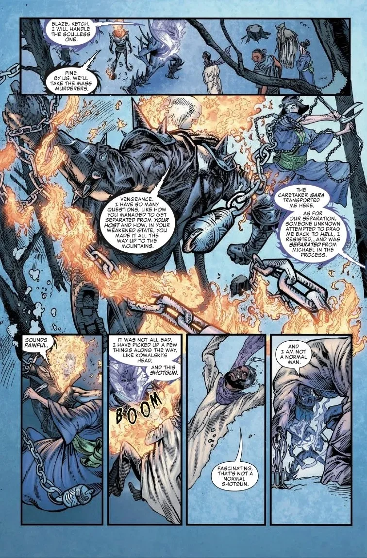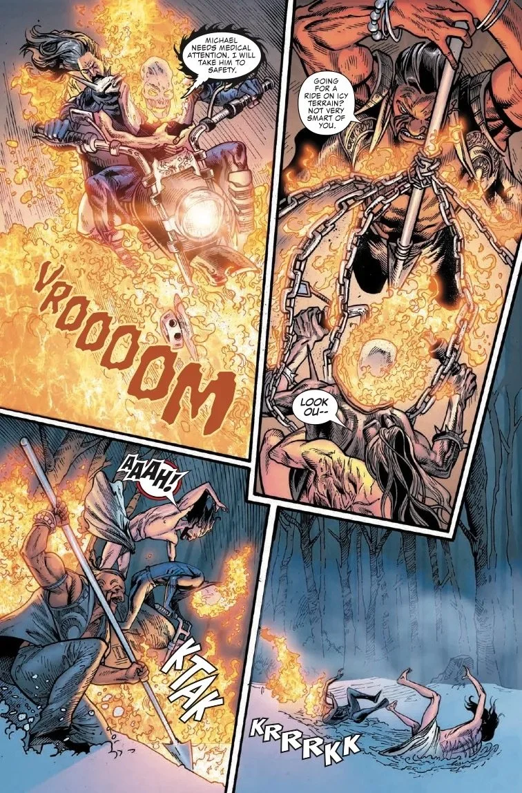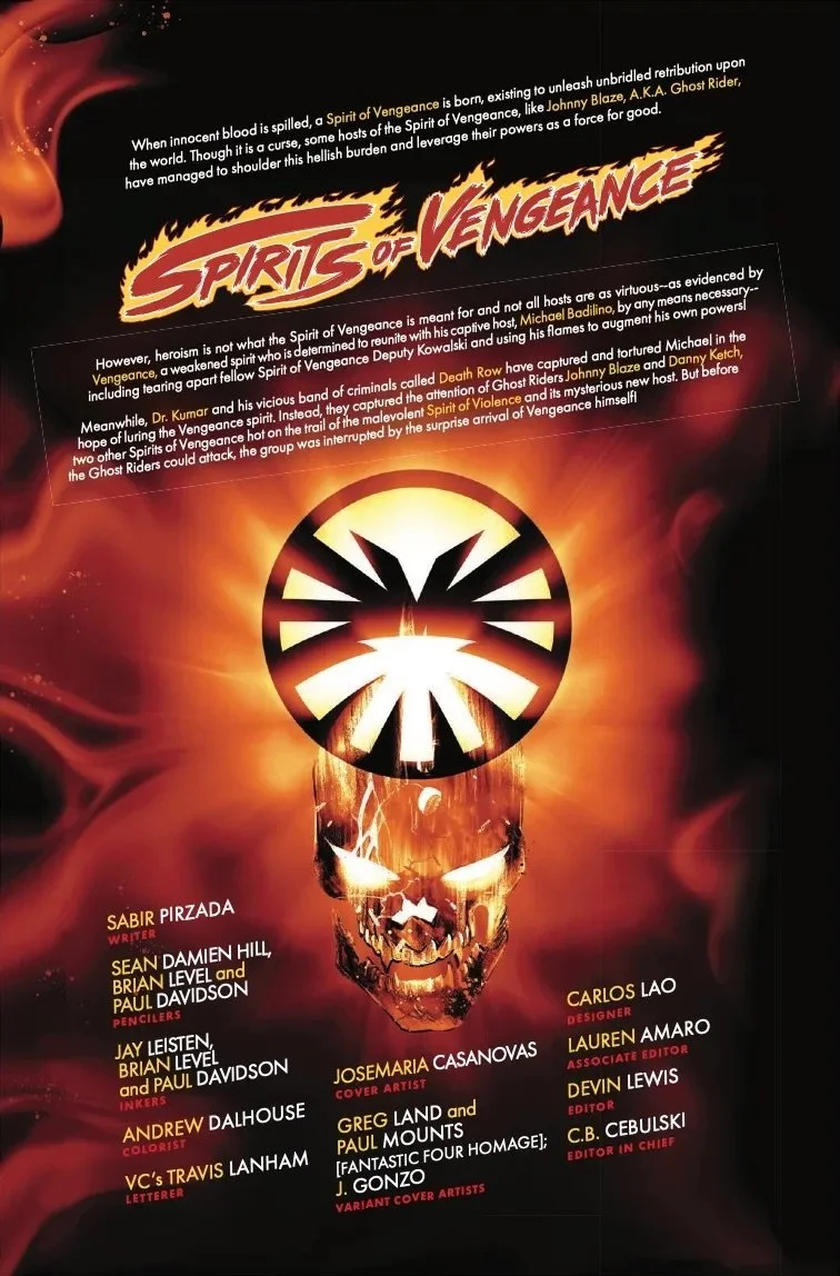 As a new, colossal evil rises in the metaphysical realm, Johnny Blaze comes face-to-face with a dangerous emissary from a violent future: GHOST RIDER 2099! But what danger could be so great as to tear the technological terror from the timestream?!