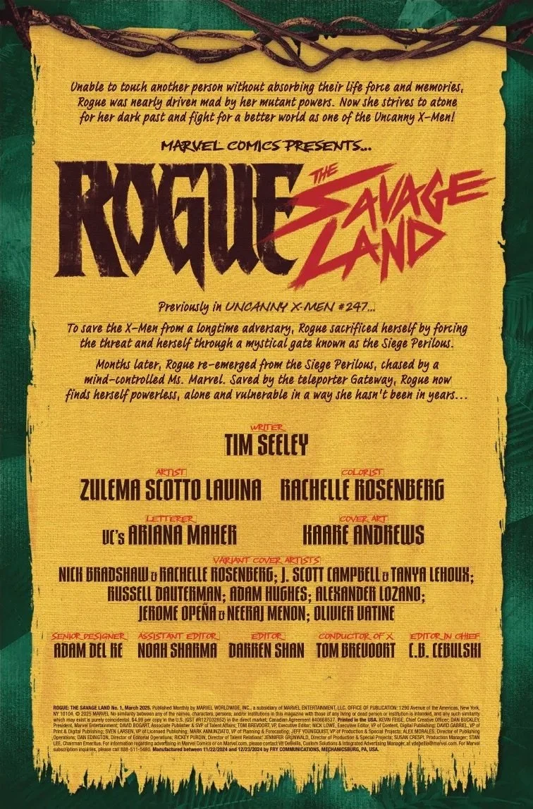 JOURNEY INTO THE LOST WORLD WITH ROGUE, MAGNETO, KA-ZAR AND MORE! The X-Man called Rogue has always been a survivor, but without her mutant powers, she'll need to prove it like never before! As the Savage Land turns toward war, Rogue will need all her skills to survive dinosaurs, mutates and the Master of Magnetism himself! Writer Tim Seeley (LOCAL MAN) and new artist sensation Zulema Scotto Lavina tell a lost story of a lost world!