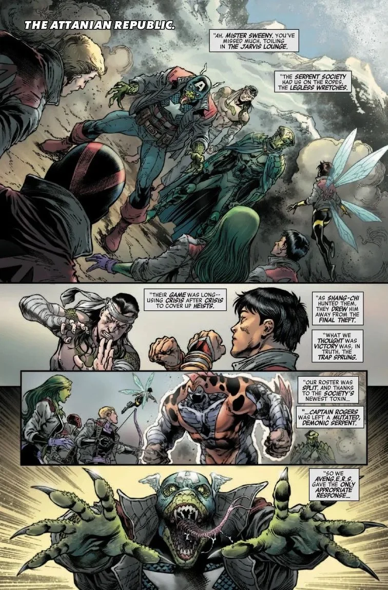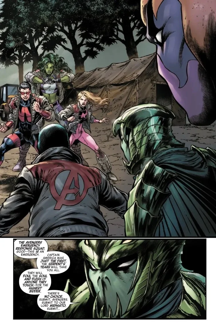 The Serpent Society has harnessed Mephisto's power to create a serum capable of raining destruction on civilization-and their first victim is Captain America! Is Cap-Snake what this team of villains finally needs to defeat the Avengers and reign supreme?