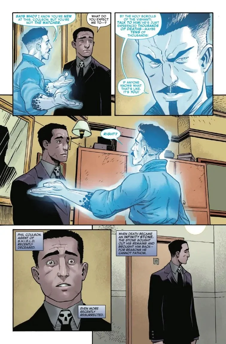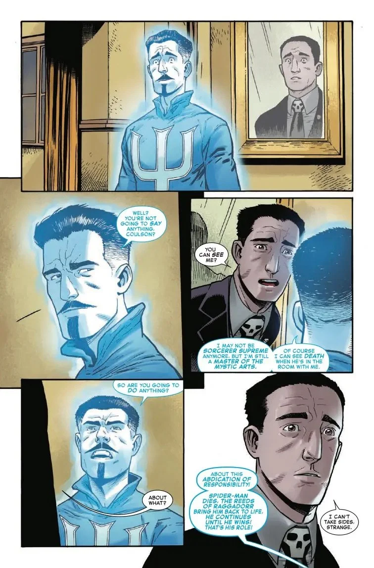 • While Spider-Man is facing the Scion who wields the power of Death, the new EMBODIMENT of death, PHIL COULSON, gets to know his powers better.