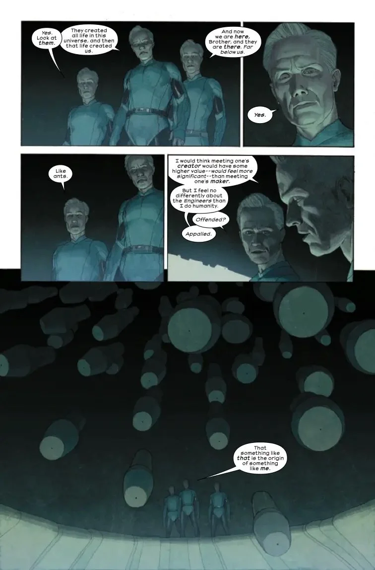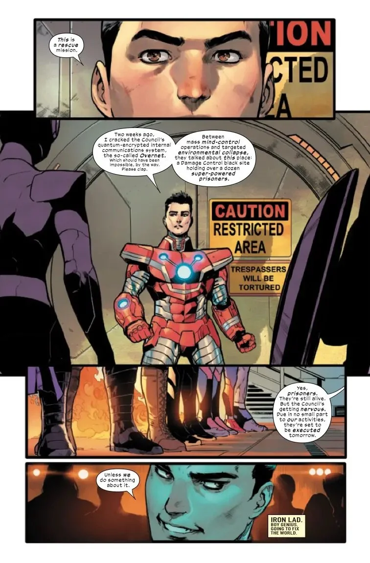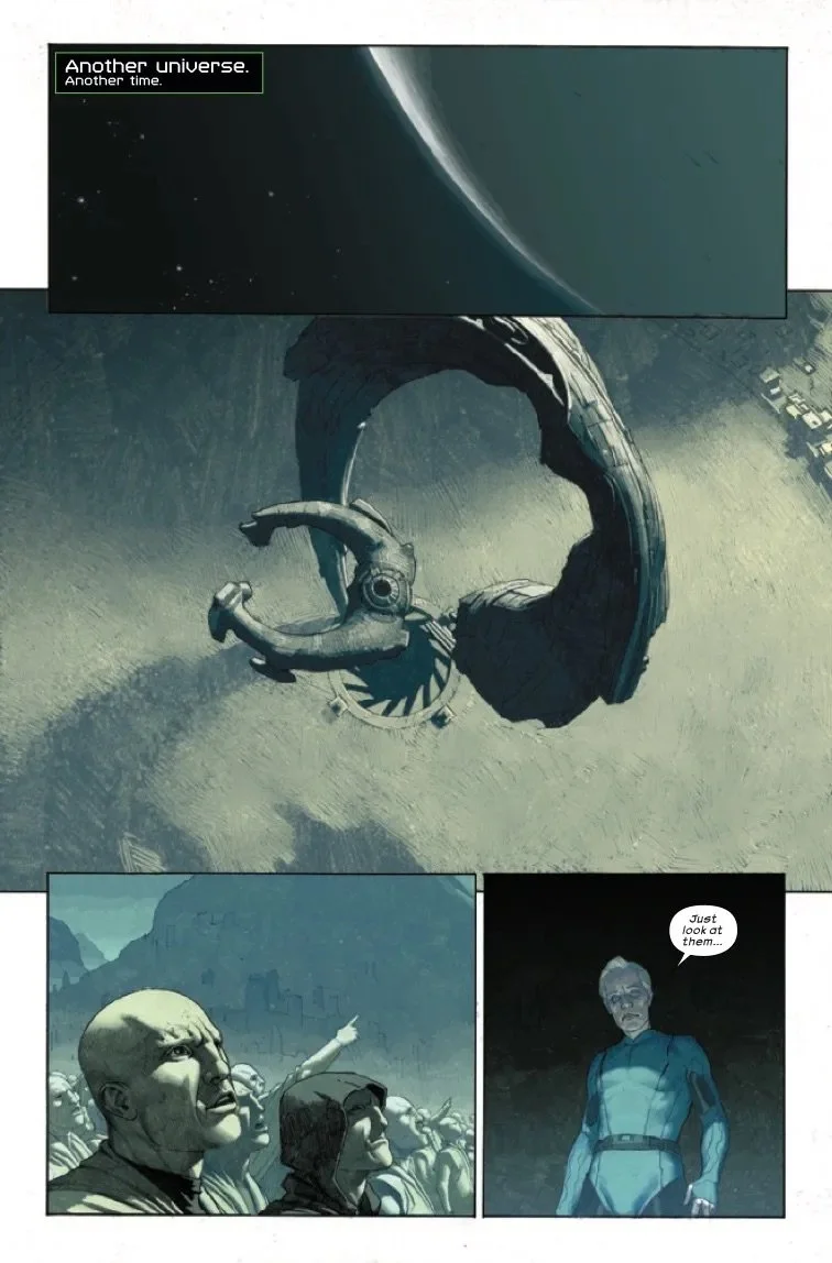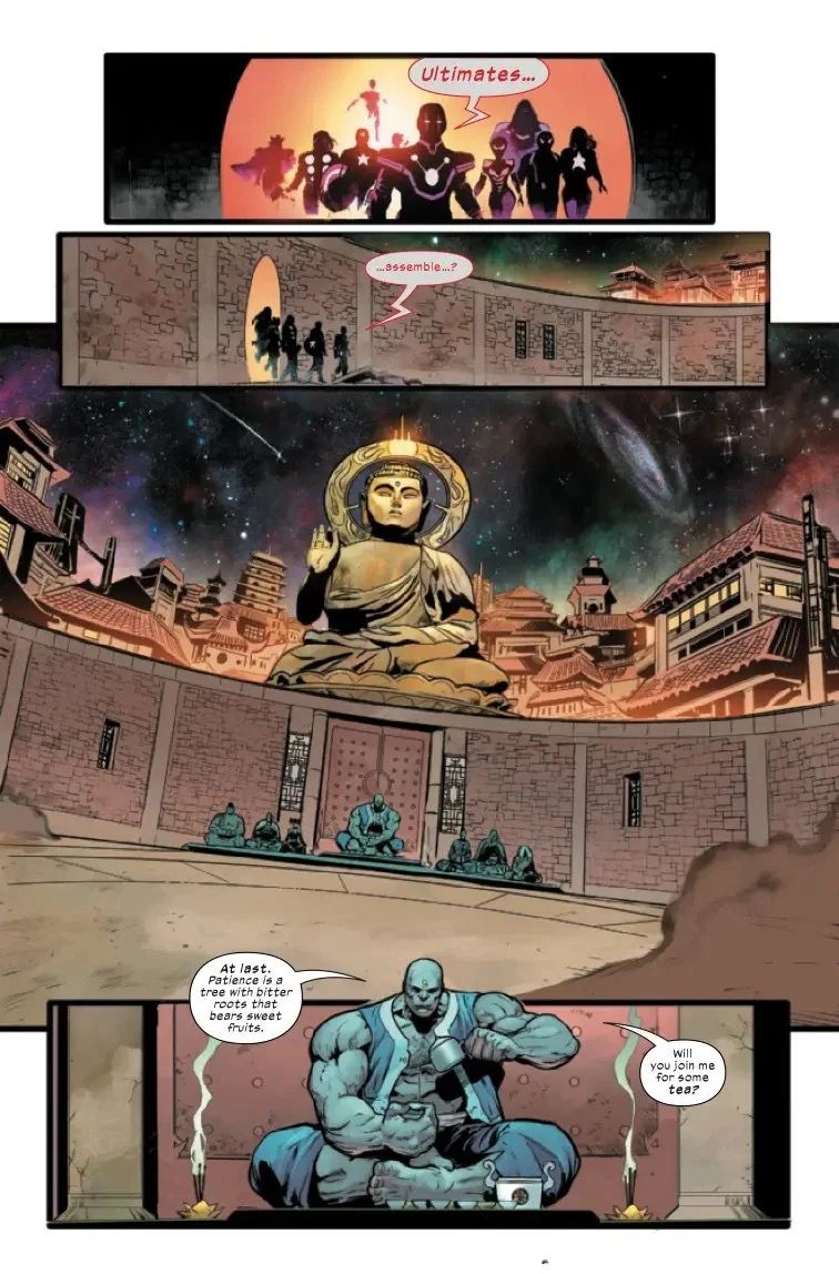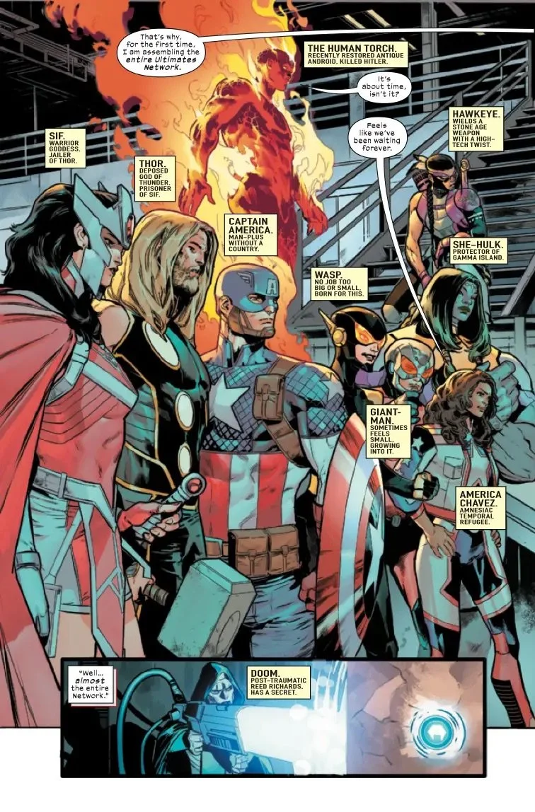 The entire roster of THE ULTIMATES unites for the first time in this high octane, climactic conclusion of the first arc! Iron Lad has a plan to defeat the Hulk, the most powerful and imposing member of the Maker's Council - but has he gotten his team in over their heads?