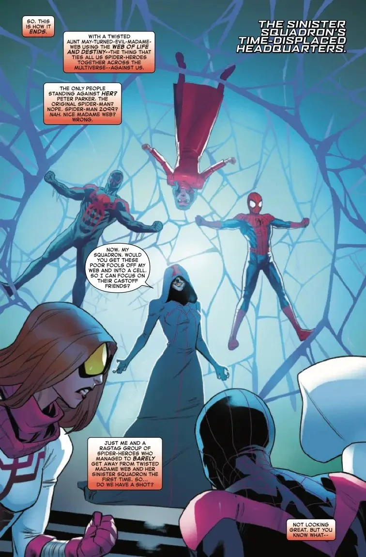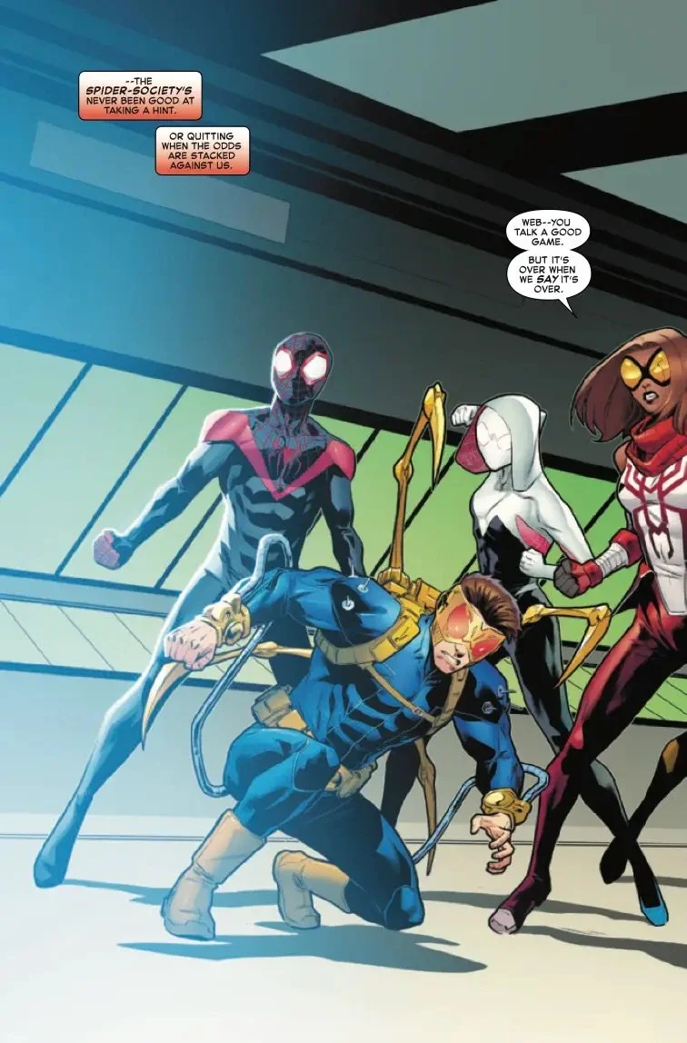 The Spider-Society was defeated on their very first mission and barely any of them escaped with their lives. Can what is left of the Society come together and save the Multiverse?