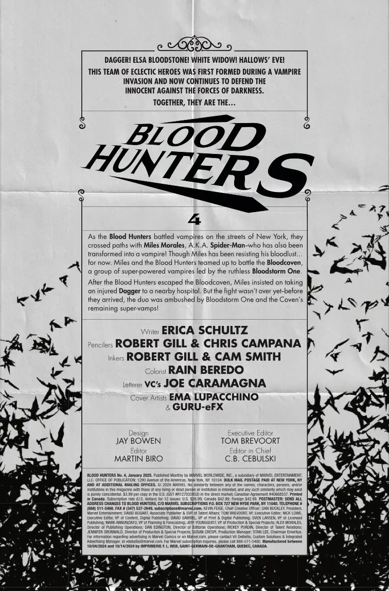 The super-vamps of the Bloodcoven have Dagger in their clutches - and her teammates in the Blood Hunters will risk it all to get her back! How far will Elsa Bloodstone, White Widow and Hallows' Eve be forced to go in order to rescue Dagger? And with the Bloodcoven's endgame in place, who will survive the experience?!