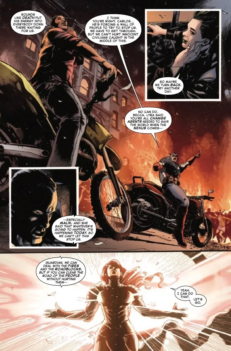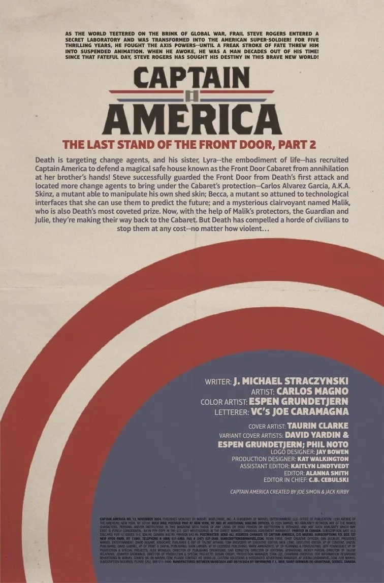 As the Krakoan era ends, mutants need allies more than ever, and Captain America is determined to get his group of mutant change agents to the Front Door Cabaret alive. As Death pulls out all the stops to destroy them, Captain America has a choice: protect the change agents, or protect his own future. But one of the rescued mutants has their own ideas - and intends to make the decision for him.