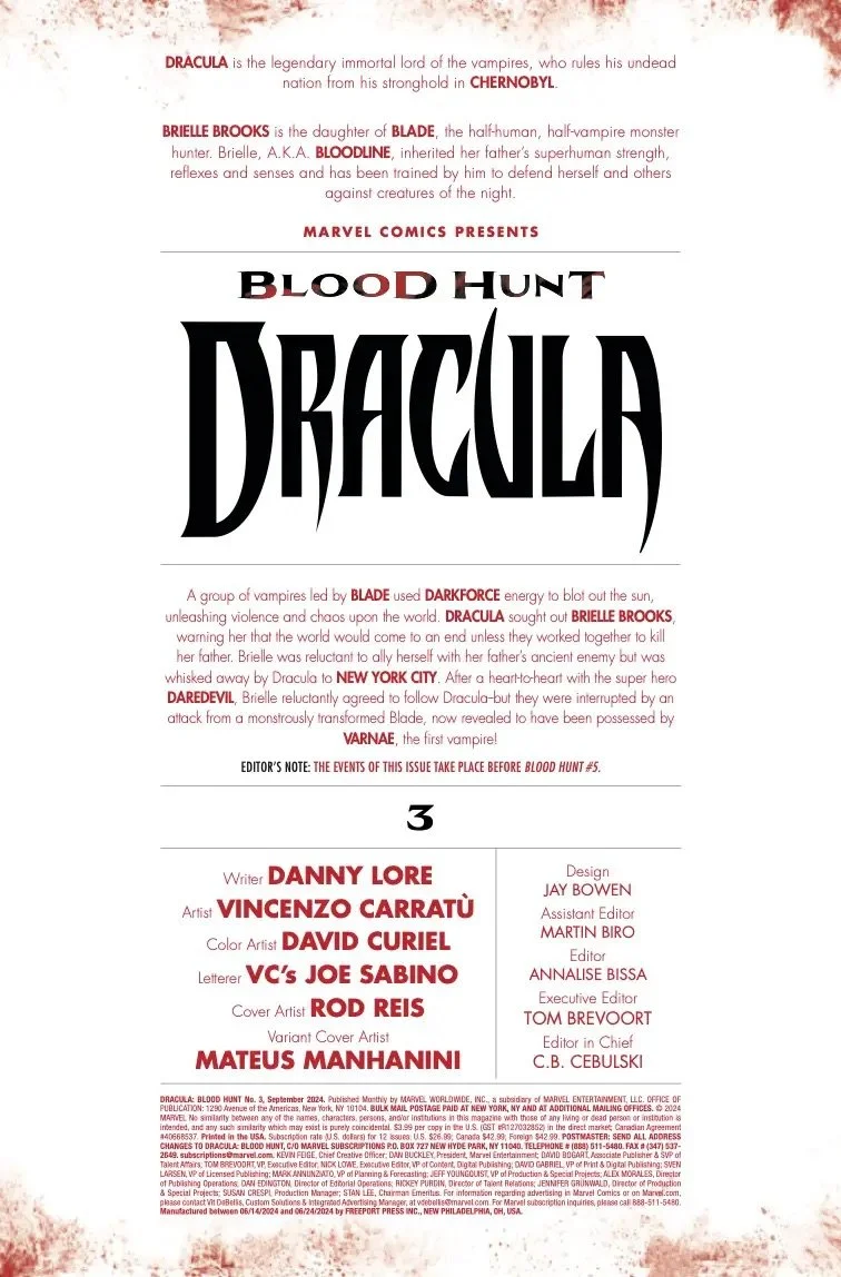 WHAT CANNOT BE DONE...IS WHAT MUST BE DONE! The vampire scourge continues to ravage Earth as the BLOOD HUNT rages on - and DRACULA must move to assert his place in the hierarchy of the night! That is, if he can convince Brielle Brooks, A.K.A. Bloodline, to bend to his will - unfortunately, she's a teenage girl, and convincing her of anything will take every resource the immortal Lord of Vampires has at his disposal...