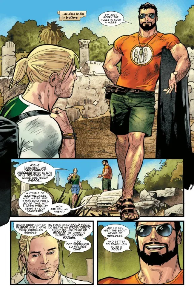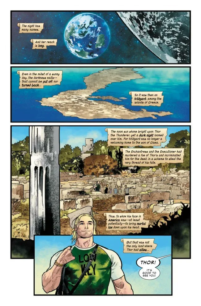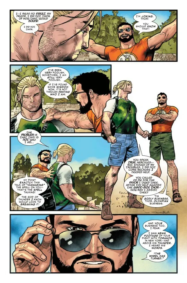 The son of Zeus sought Thor out - for Toranos' wheel had turned for the Olympians too, and two Gods together might solve such a mystery. The trail took them to a wasteland of snow and ice...to terror and treachery...and to an old foe of Hercules, at the height of her dread power. New series artist JAN BAZALDUA draws the story of the IMMORTAL THOR...and the Night Mother's vengeance. PLUS: PART 5 OF DEADPOOL/WOLVERINE: WEAPON X-TRACTION!