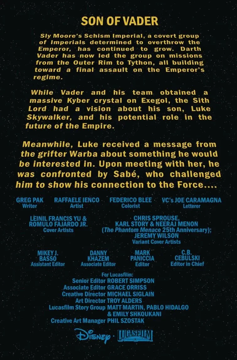 It is said there can be only two SITH, the EMPEROR AND DARTH VADER. But could it someday be PALPATINE and LUKE SKYWALKER? Or Vader and his son? THE HANDMAIDEN SABÉ finally tests Luke - with WARBA'S life in the balance! And THE SCHISM IMPERIAL reveals its hidden hand!