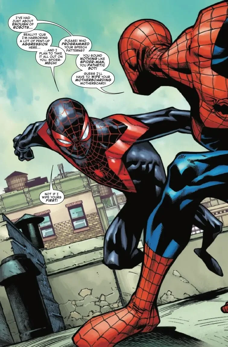 PETER PARKER vs. MILES MORALES! No holds barred, each trying to take the other OUT! What could have pitted them against each other so viciously? Who has the skills to pull that off? What effect wiLL the collateral damage have?!