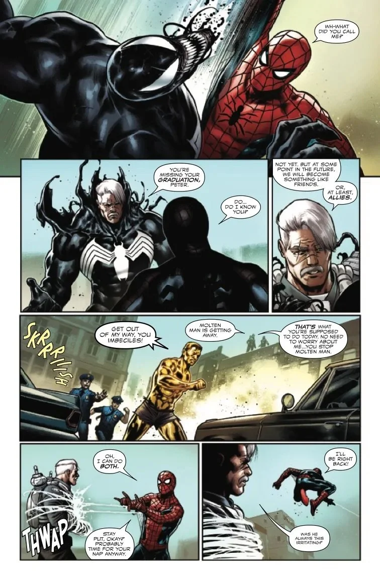 As Eddie and Dylan Brock's father/son war rages, ANOTHER Dylan Brock is on a mission to make sure things go the way they're supposed to. An older Dylan - OLD MAN VENOM - travels back in time to Spider-Man's earliest days - but should he fail, it's not just the fates of the combatants of the Venom War at stake - but the fate of all of time itself!