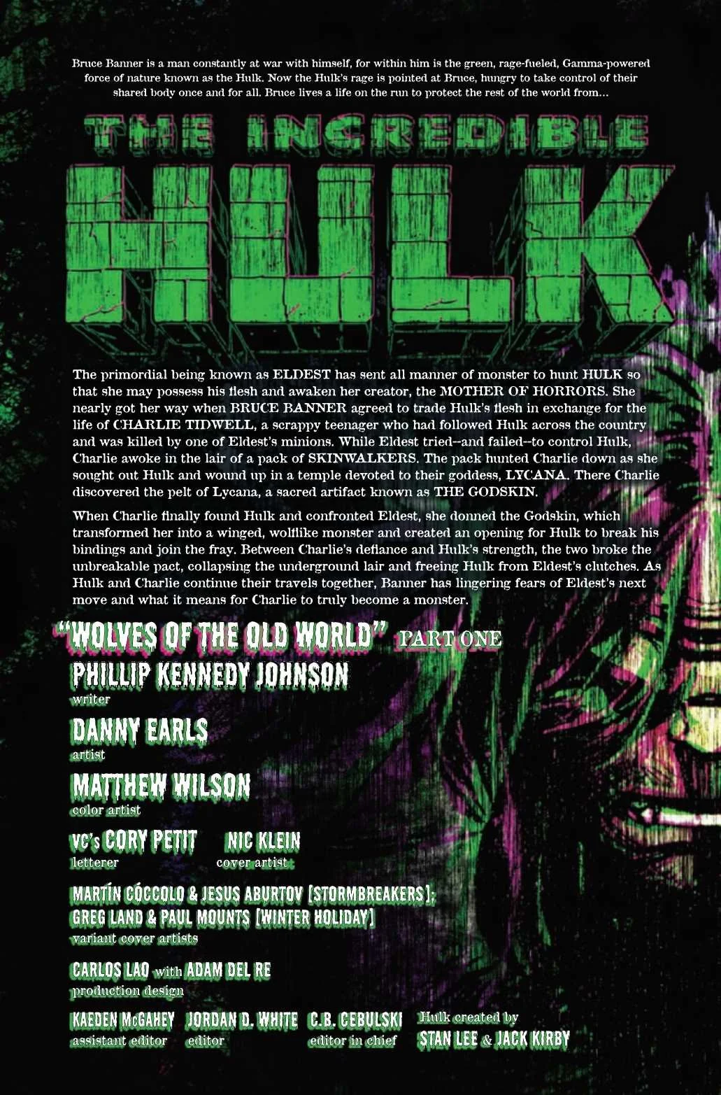 WOLVES AT THE DOOR! In the aftermath of Banner and Charlie's dramatic escape from Las Vegas, they're back on the road and lying low...or so Banner thinks. But as Charlie goes off at night to revel in the newfound power she doesn't understand, she's found by WEREWOLF BY NIGHT, who warns her about the consequences of what she's done...and what she's becoming. Meanwhile, HULK is hunted down by one of those consequences: one of the oldest, most powerful creatures on Earth, the immortal wolf-demon VÂRCOLAC!