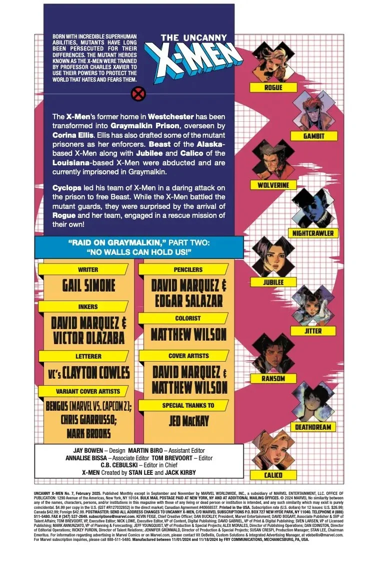 "RAID ON GRAYMALKIN" PART TWO! THE GRAYMALKIN RAID CONTINUES as two conflicting teams of X-Men come to a crossroads at Graymalkin Prison, formerly Xavier's Institute! As if the Perimeter protocols and the prison's mutant TRUSTEES weren't enough, team leaders ROGUE and CYCLOPS find themselves at war over the uncertain legacy of Charles Xavier!