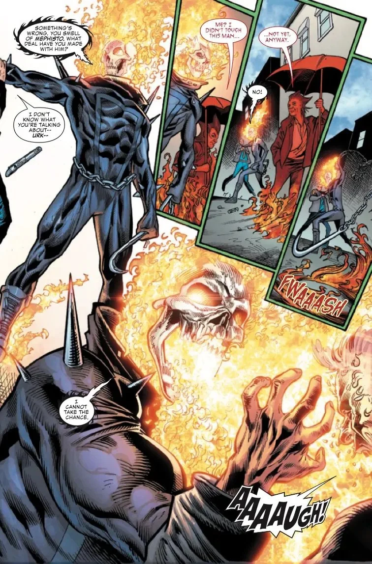 BAPTISM BY FIRE! As Johnny Blaze is still learning to live with his new normal after the events of GHOST RIDER: FINAL VENGEANCE, something new and sinister has begun to stir! Something more bloodthirsty than anything Johnny Blaze has ever known - something that eats souls and Spirits alike...and it's HUNGRY.