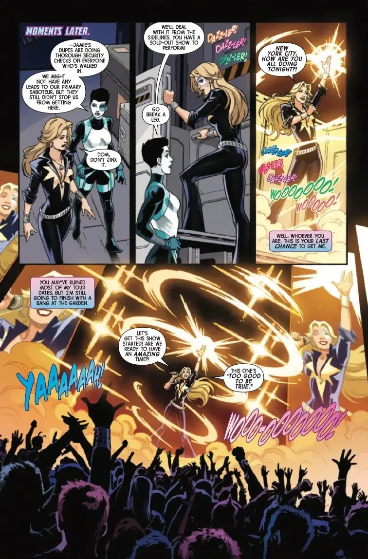 THE FINAL CURTAIN! Dazzler hits center stage in New York City - and the mastermind behind all of the attacks on her concerts is finally revealed! Action, heartbreak, surprise guests and one heck of a light show!
