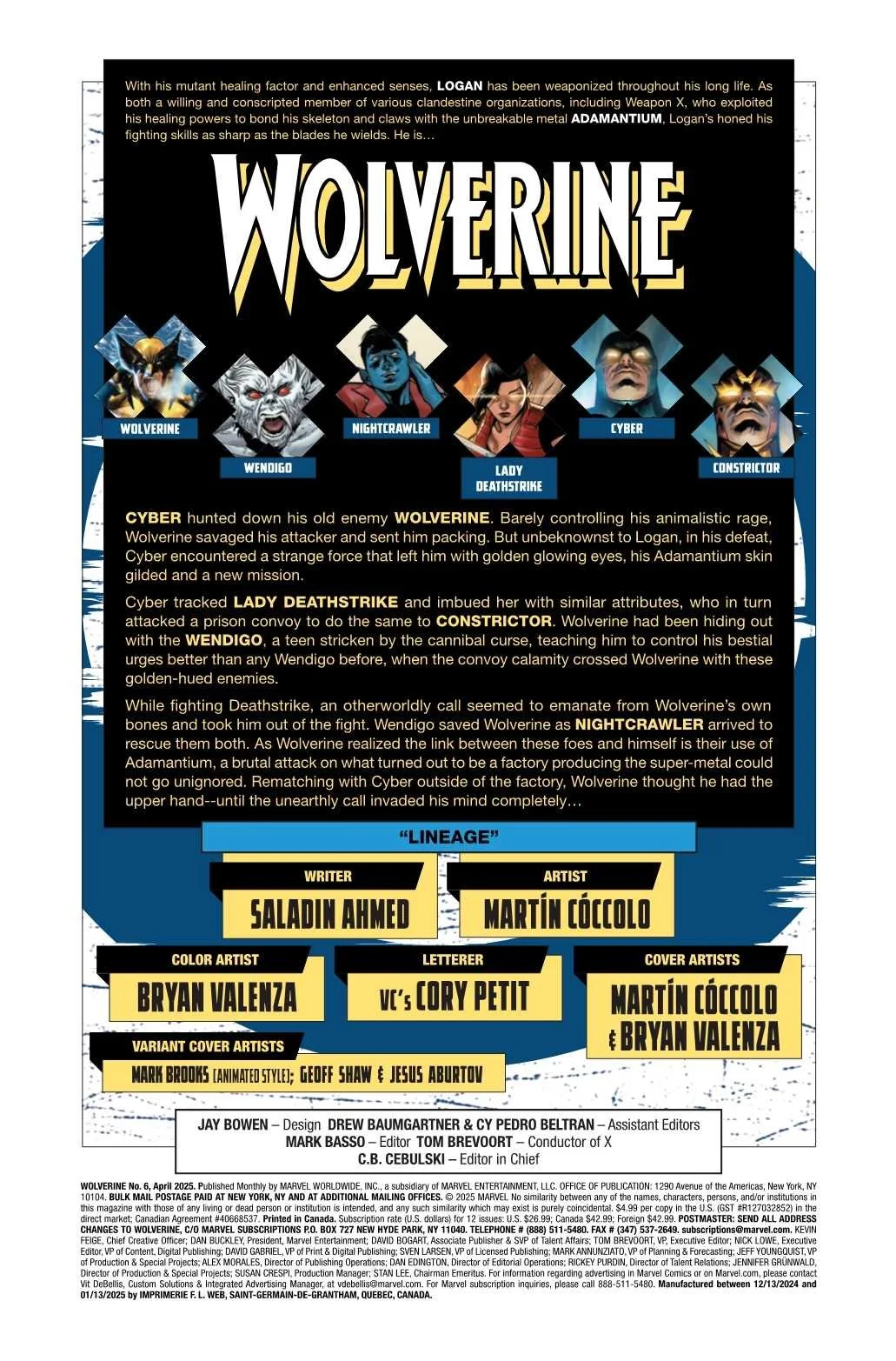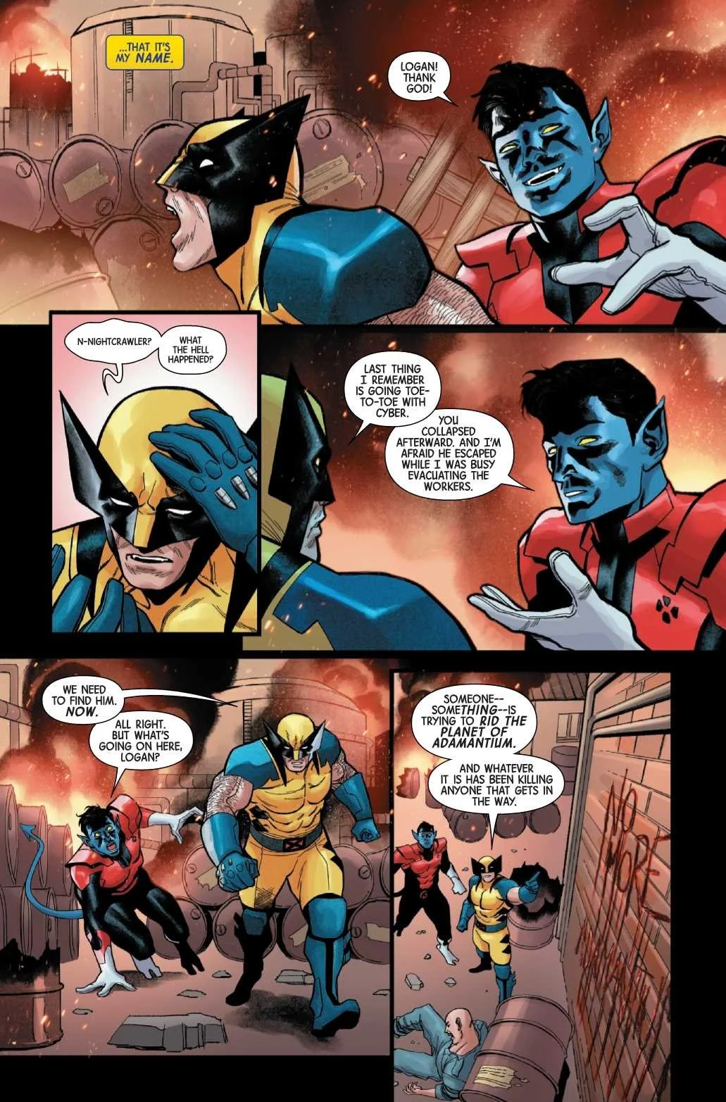 HEAVY METAL CLASH! Two WOLVERINEs and a NIGHTCRAWER versus CONSTRICTOR, CYBER and DEATHSTRIKE in a clash of the adamantium titans! United by a mysterious power, if LOGAN can't beat them...will he join them? Come for the battle - stay for the jaw-dropping surprise!