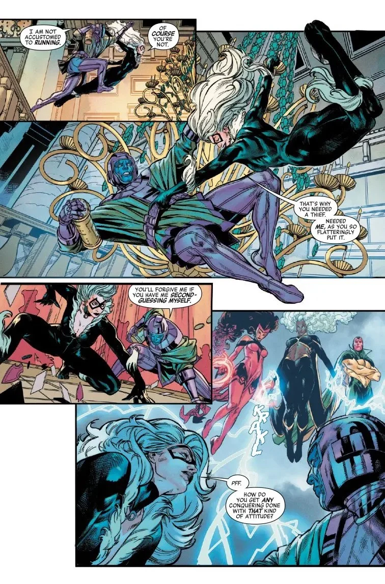 ONCE A THIEF...ALWAYS A THIEF! The Avengers never should have trusted Felicia! Can they stop BLACK CAT from escaping the space casino with Kang's stolen intel? To do so, they'll have to get past Black Cat's newest bodyguards...Avengers, get ready for your first clash with GATECRASHER & THE TECHNET!