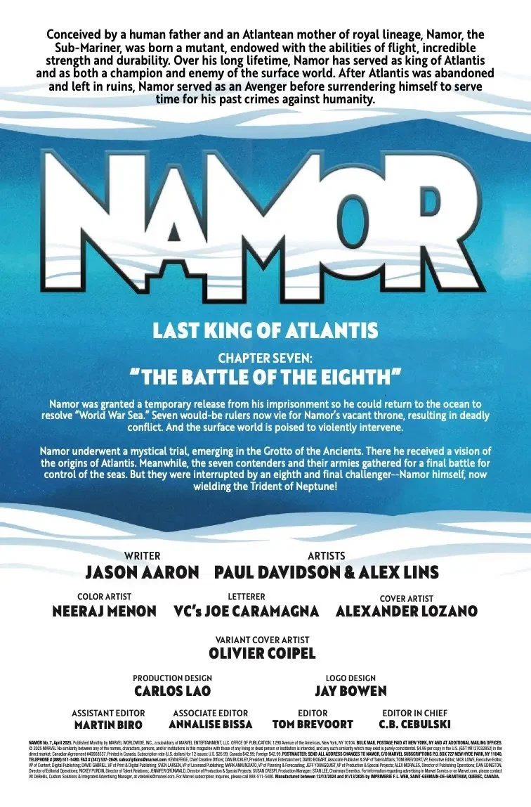 The dark secrets of Atlantis laid bare! While World War Sea rages in the deep, Namor learns the dark truth behind the original sinking of Atlantis, a revelation that will forever change the course of the undersea realms!